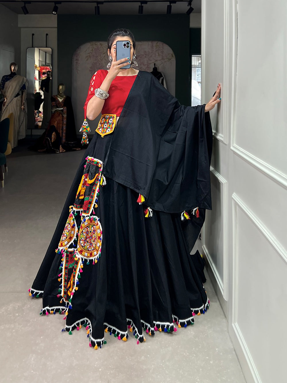 Aari work black lehenga choli