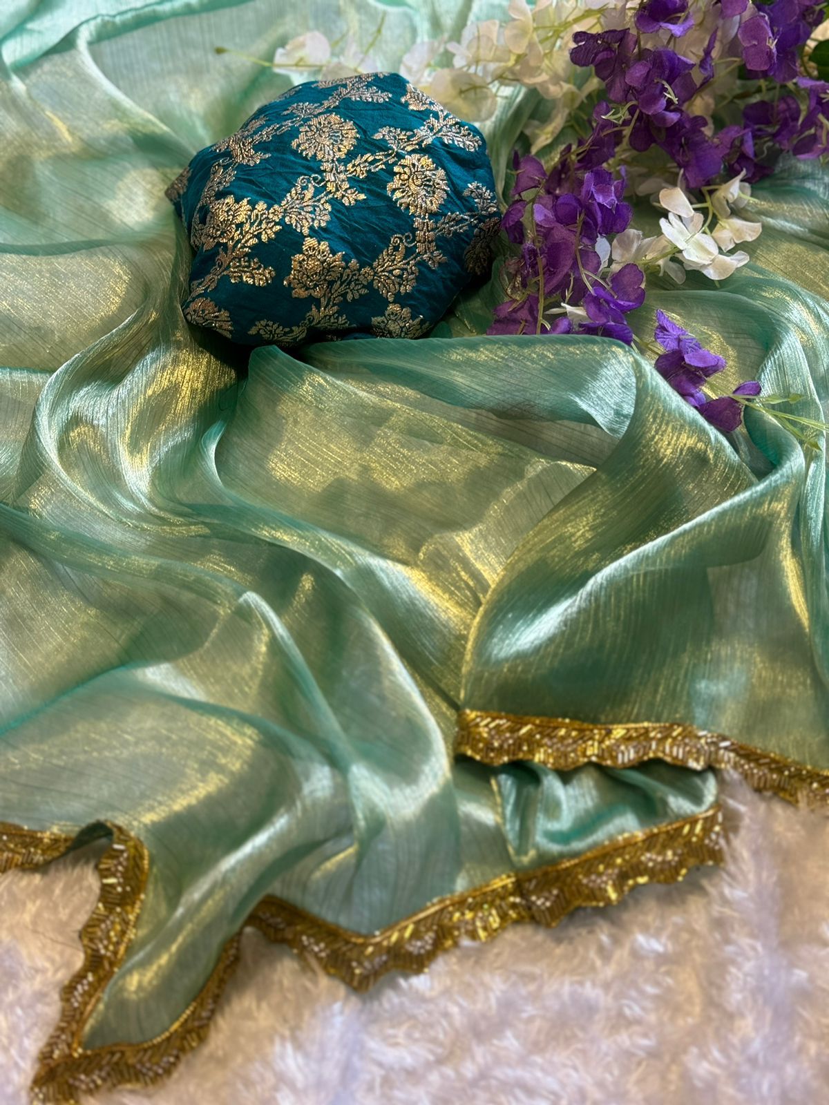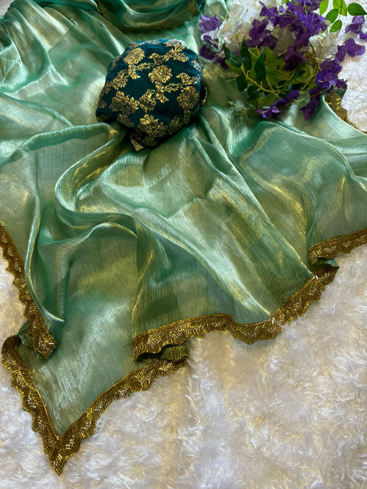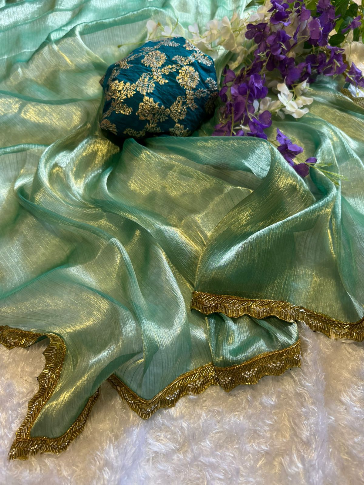 Beautiful Green Jimmy Choo saree with Dola Silk Blouse