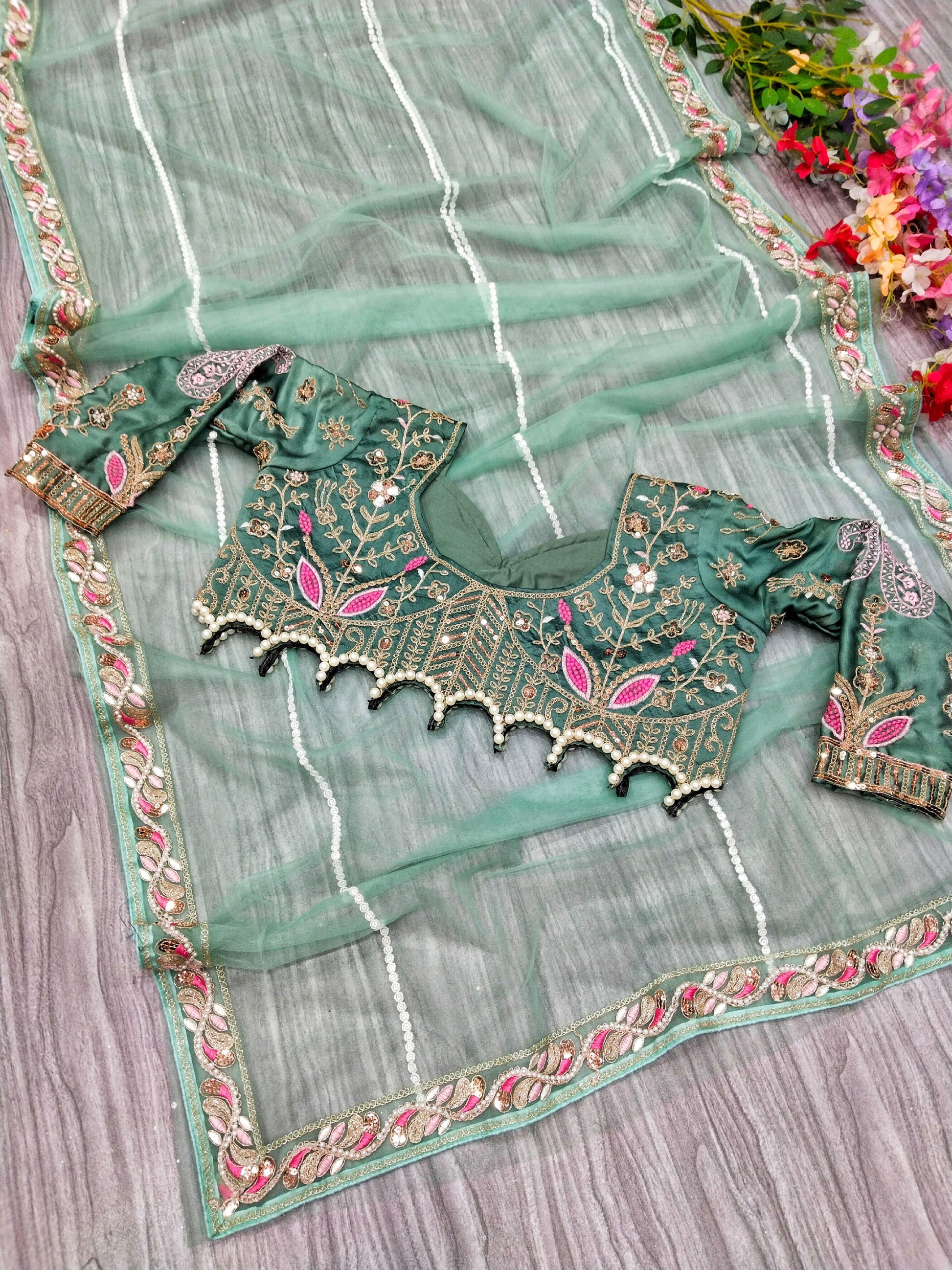 Blouse Work - Heavy Embroidery Sequence And pearl work