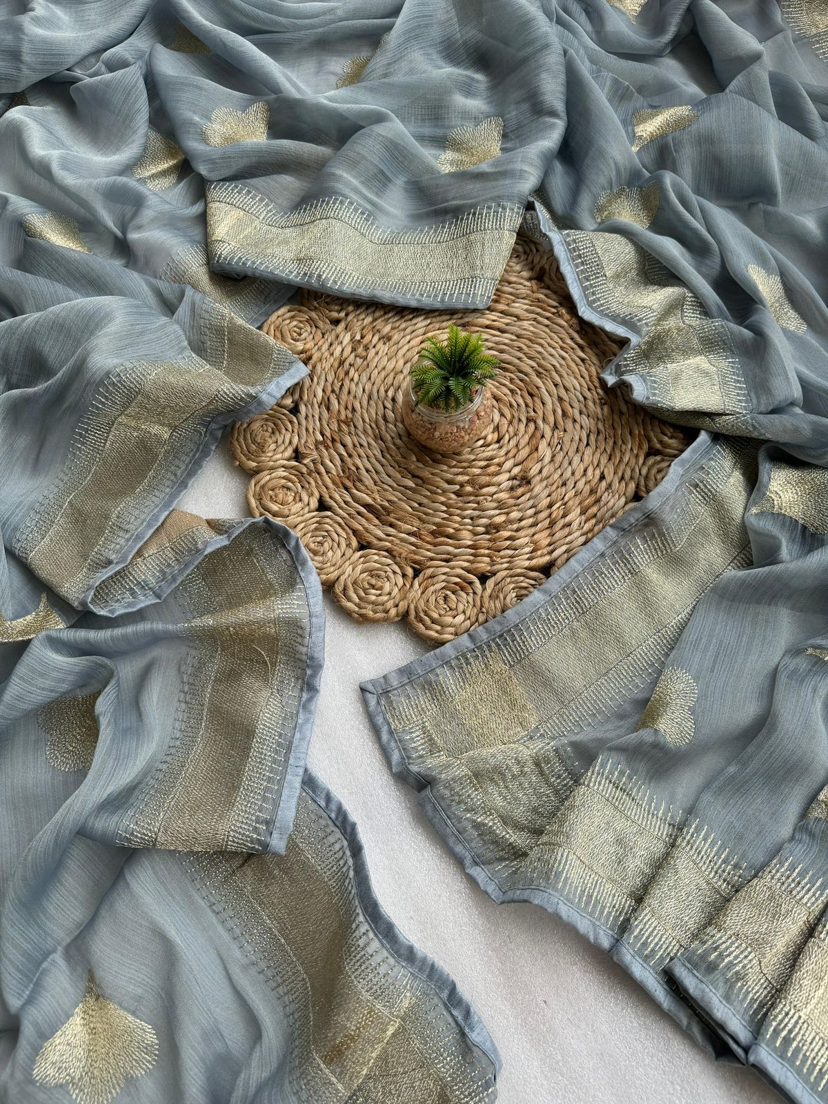 Saree: Premium Chanderi Cotton With Multy Thread Butta Design And Heavy Cotton Tussels