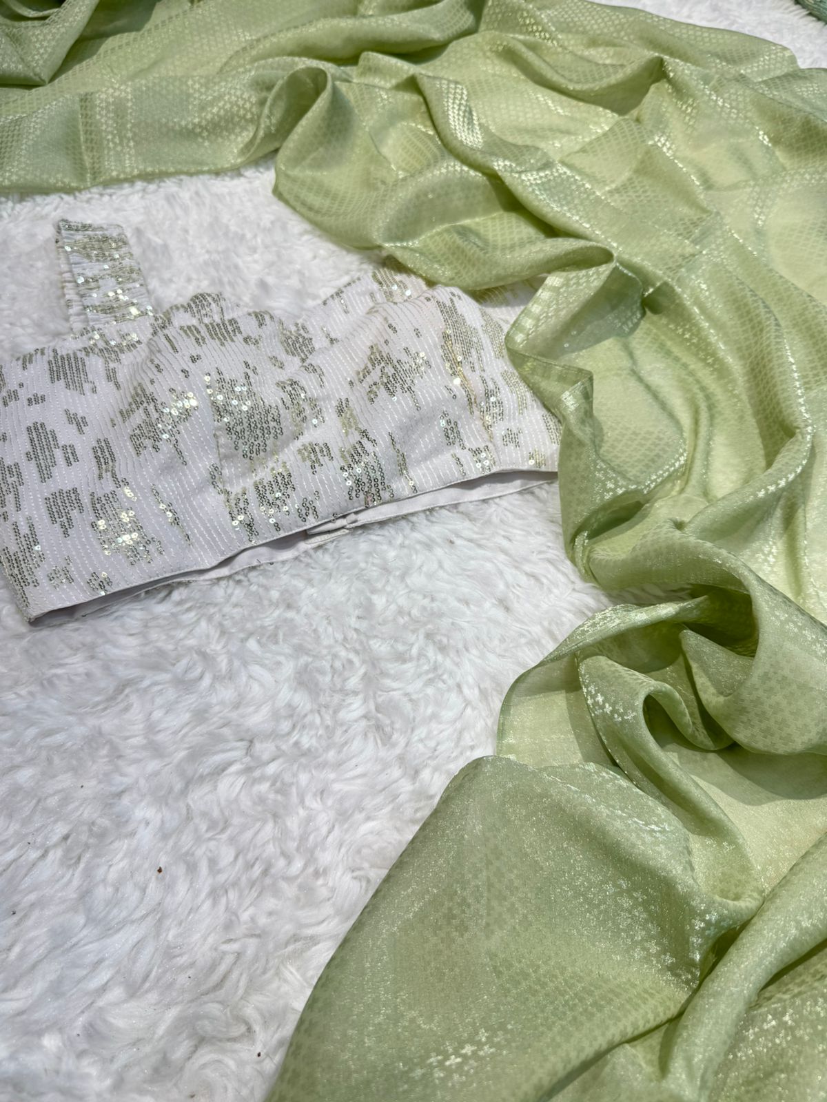 Blouse Length : Stitched blouse will be of 38 bust size (with margin up to 42)