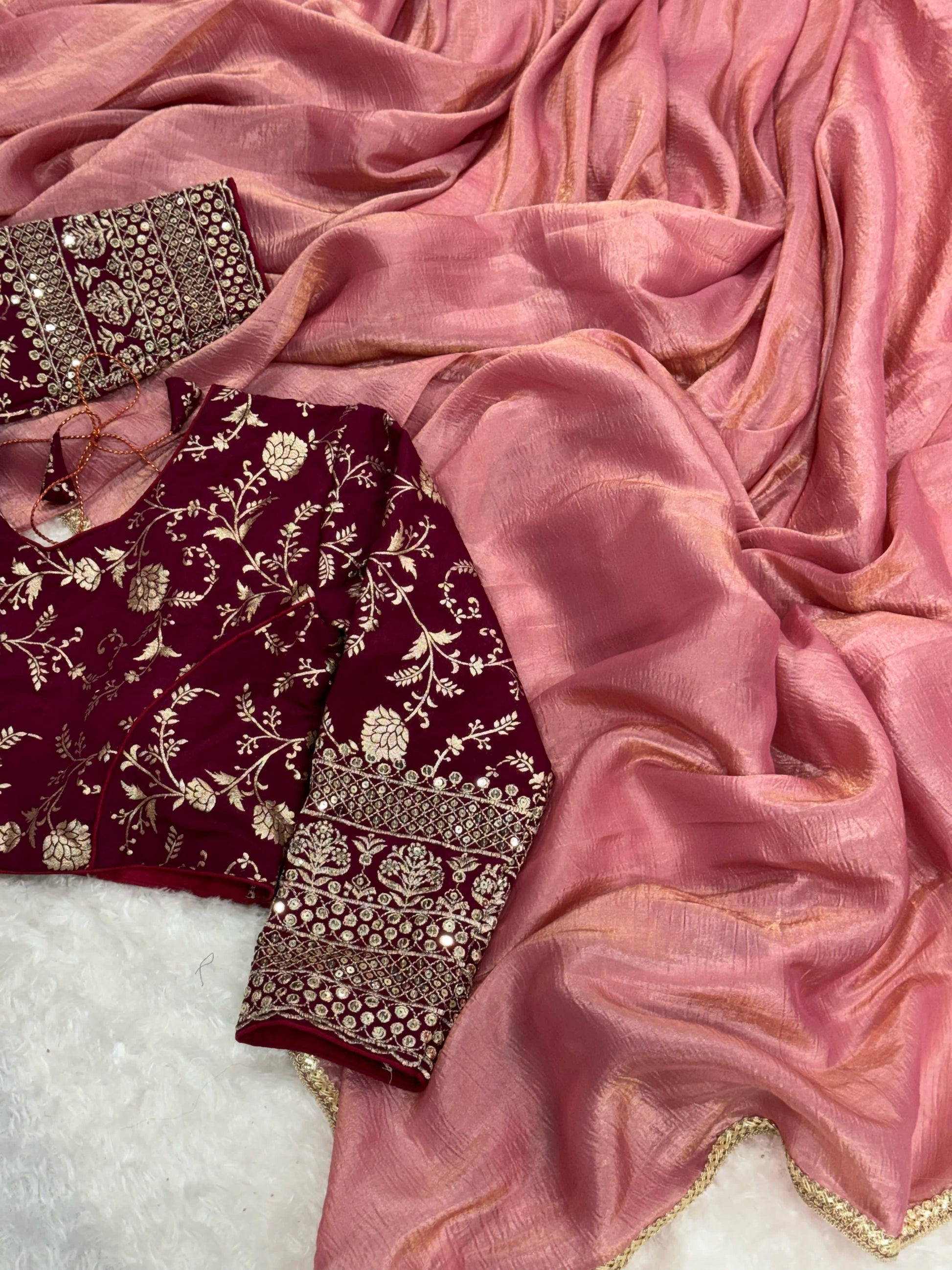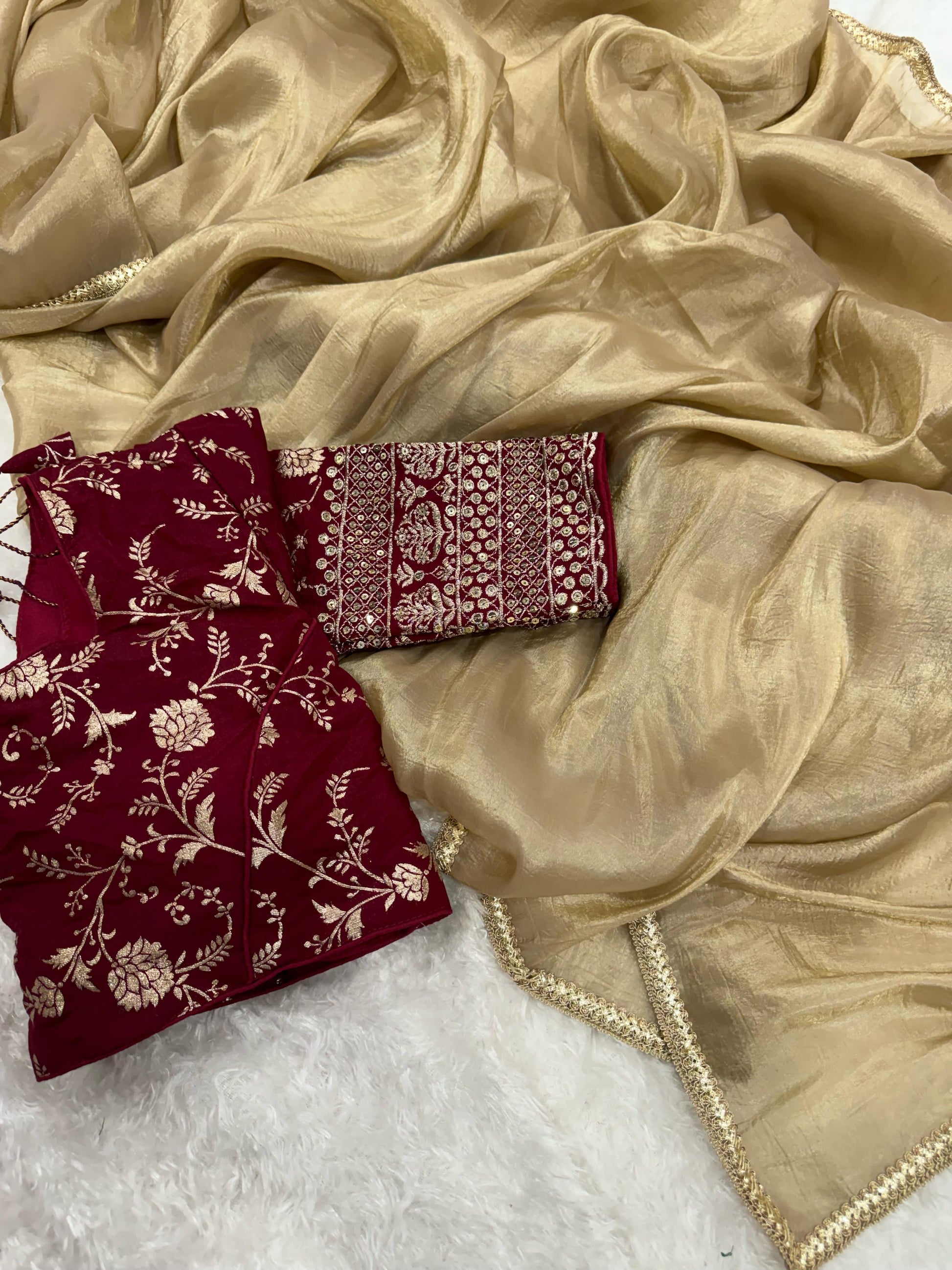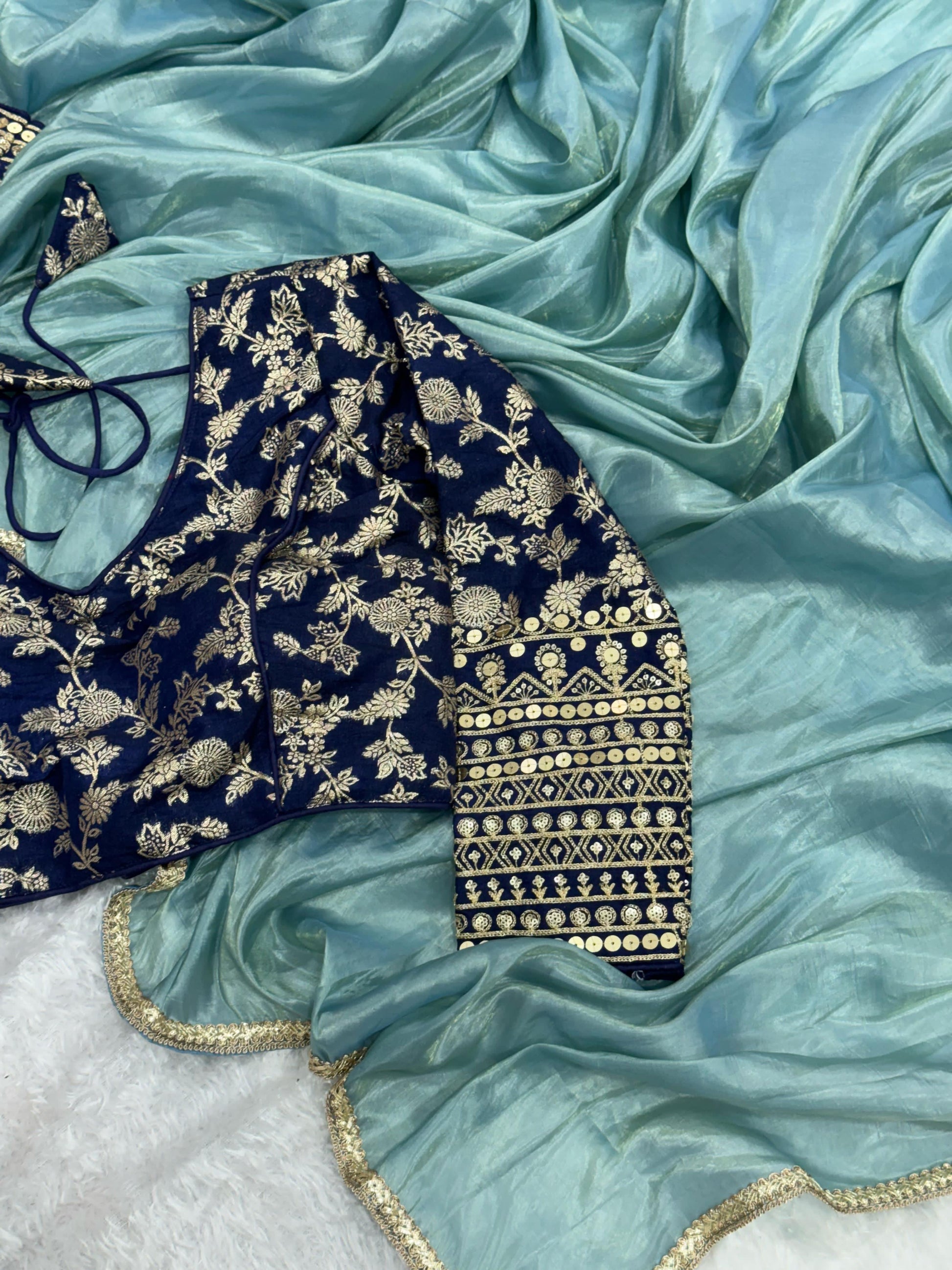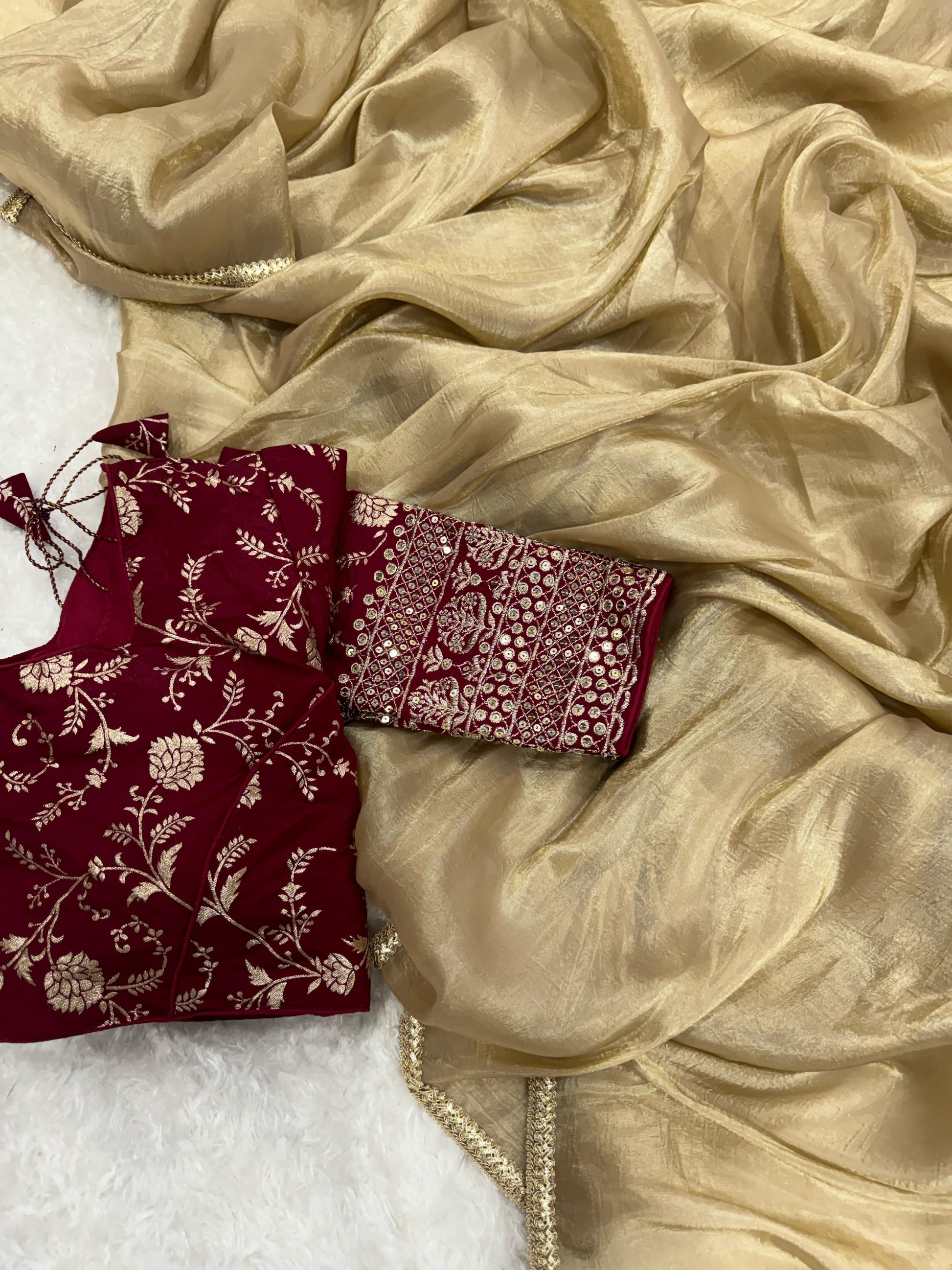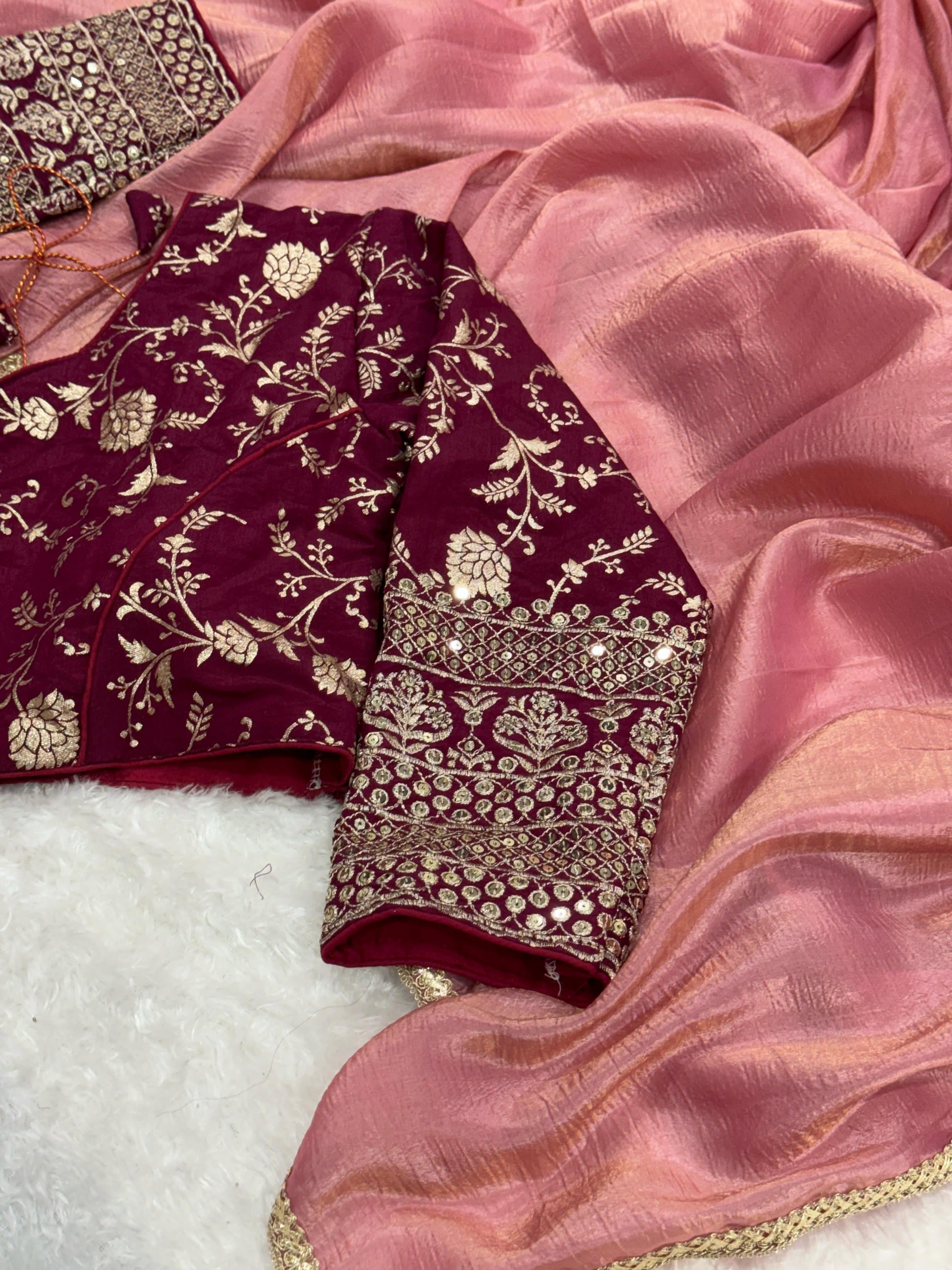 Blouse Material : Banarsi Dola Silk with Sequins thread work