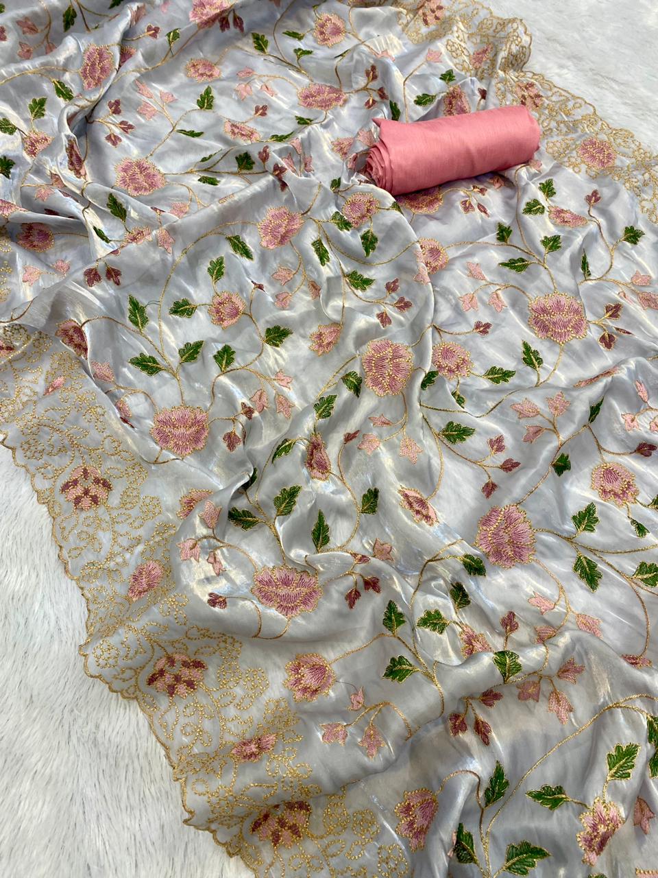 Fabric and work - Jimmychoo Fabric with full heavy embroidery of motif, Zari and Threadwork