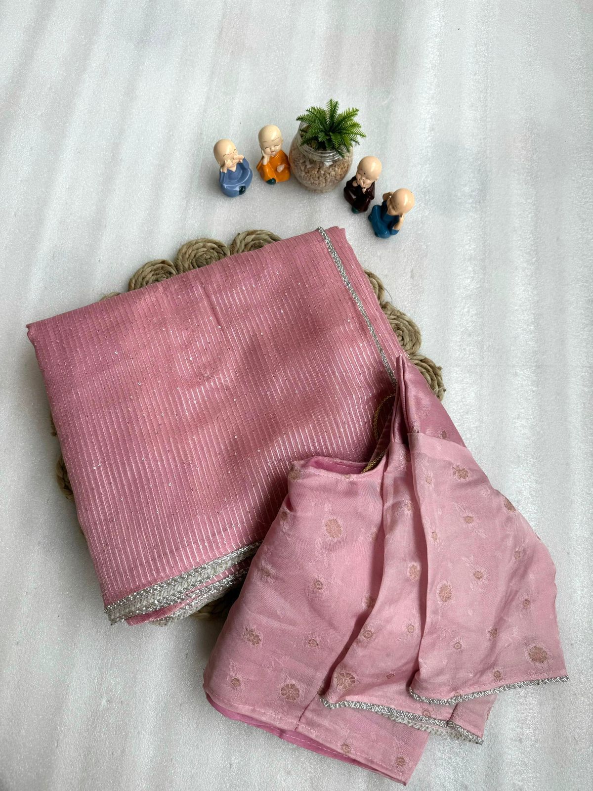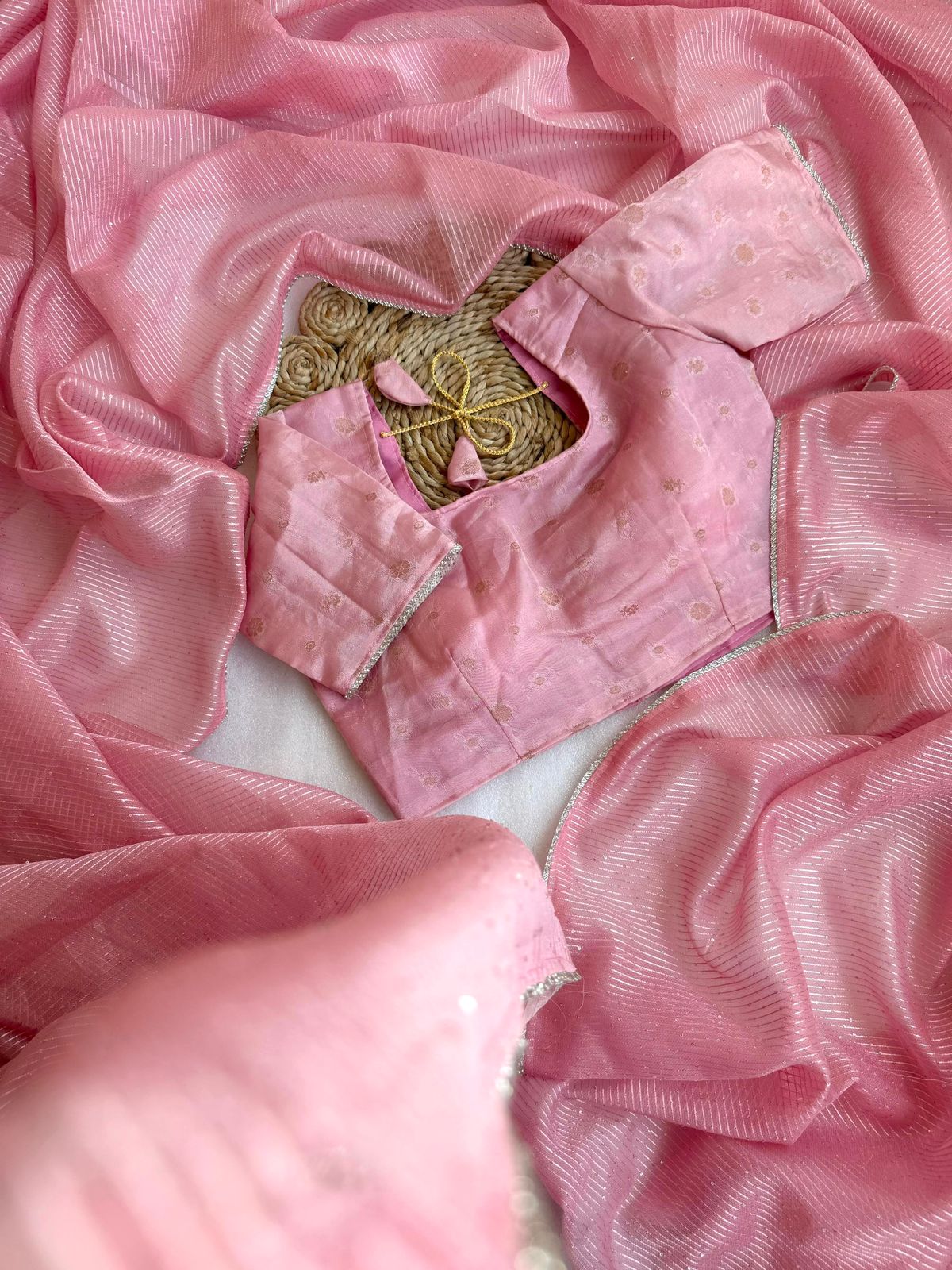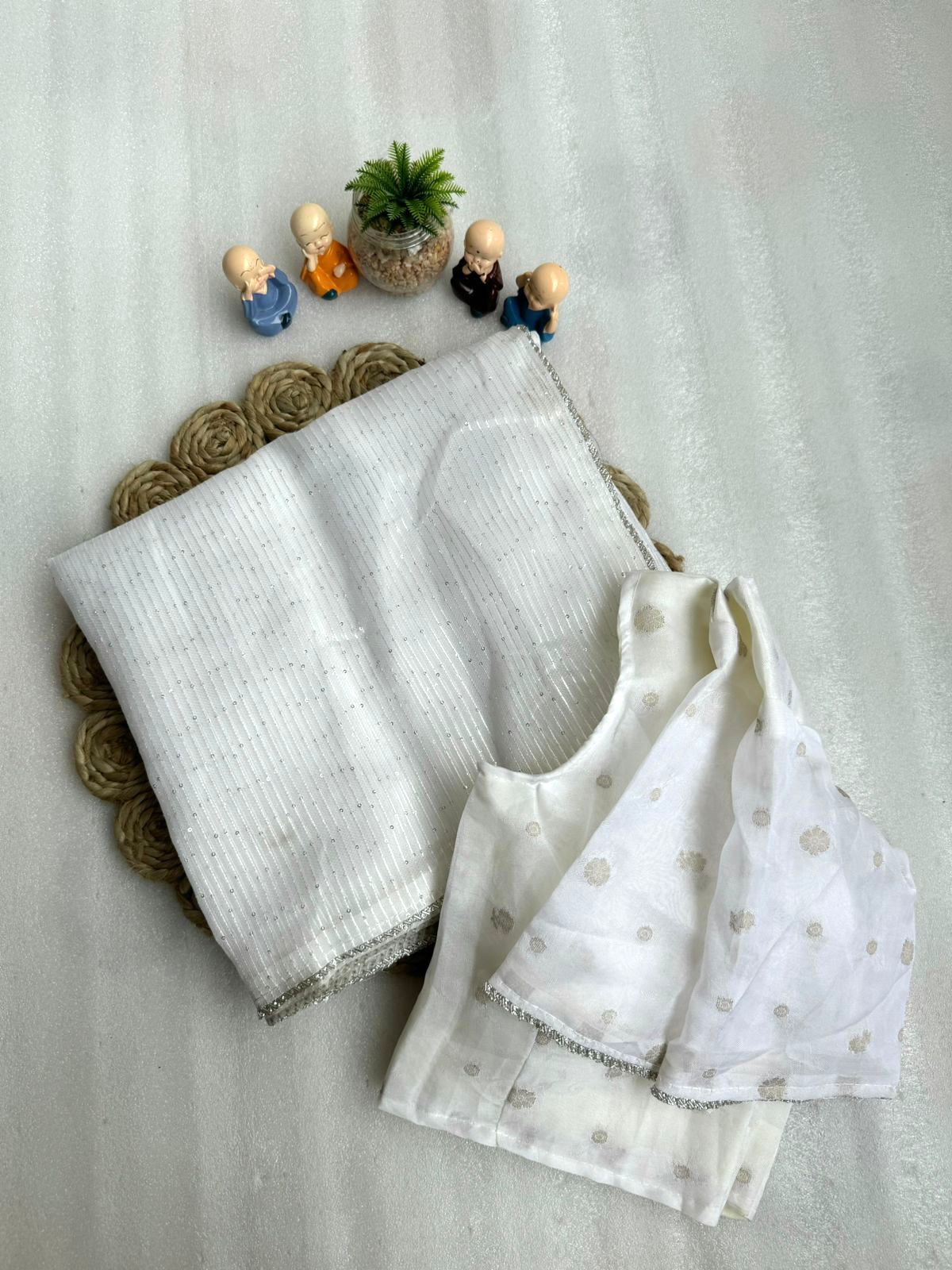 Saree: Pure Soft Georgette Crochet Sequence Saree With Jarkan Lace Border