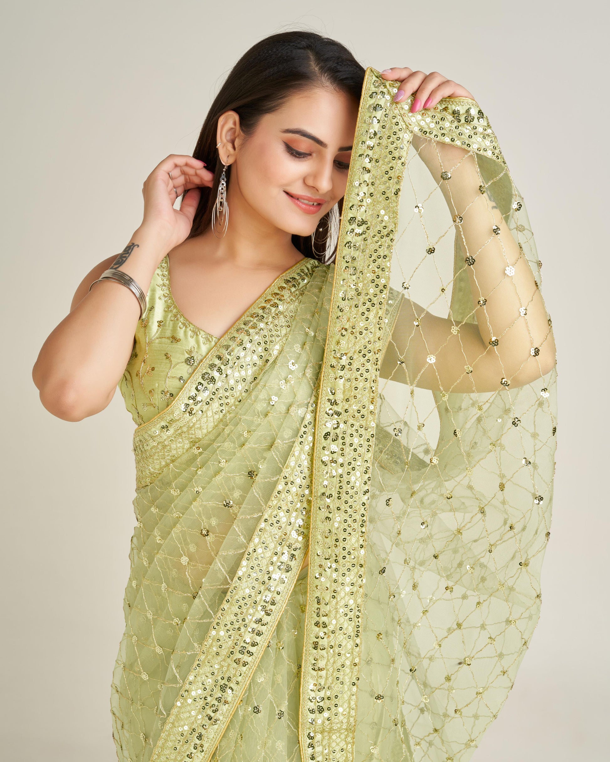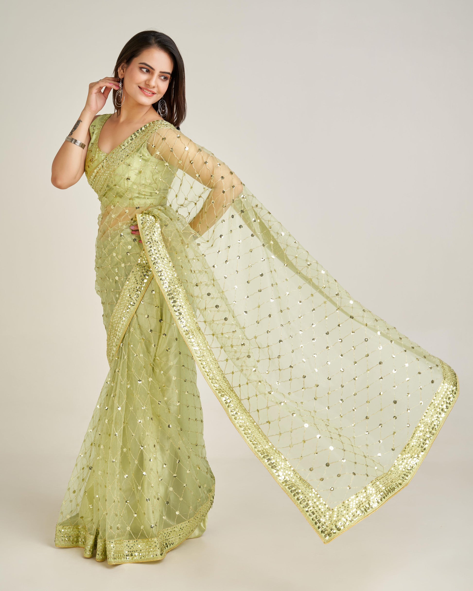 Blouse Fabric - Banglori silk with sequins & dori work all over front & back ( Unstitched )