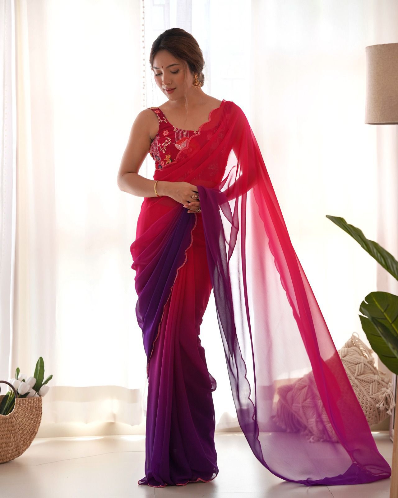Ombre shade sarees with sequins work blouse