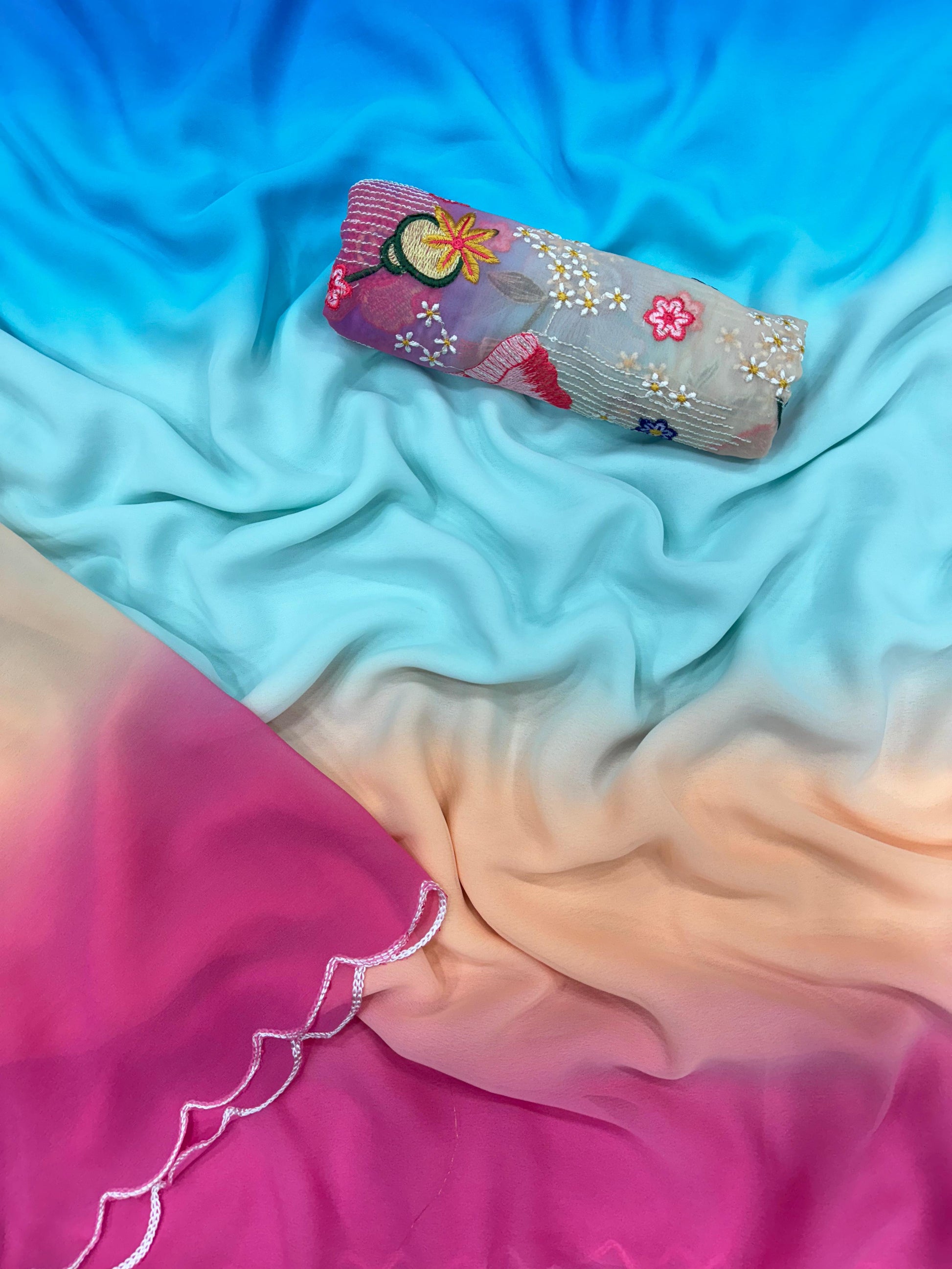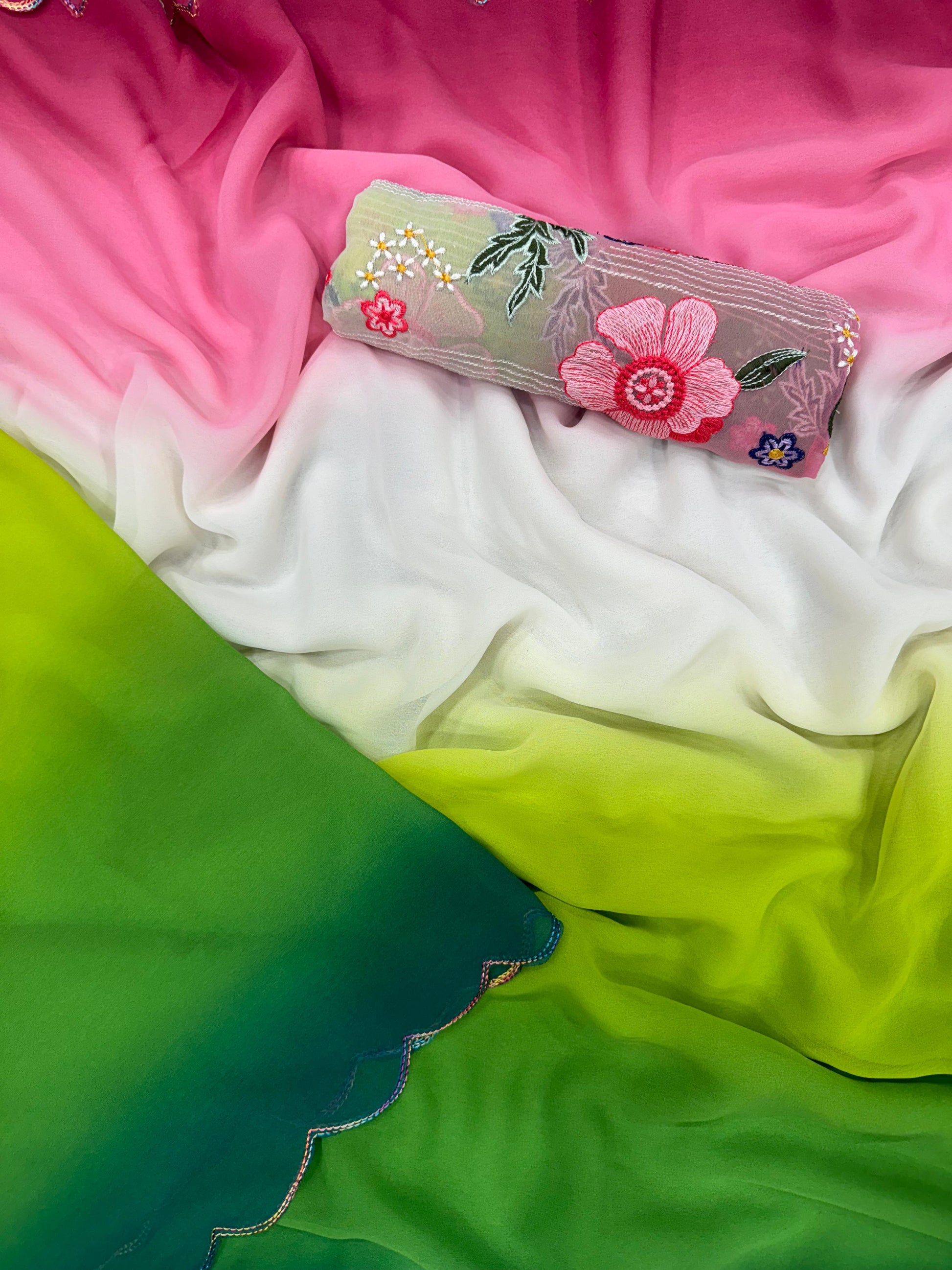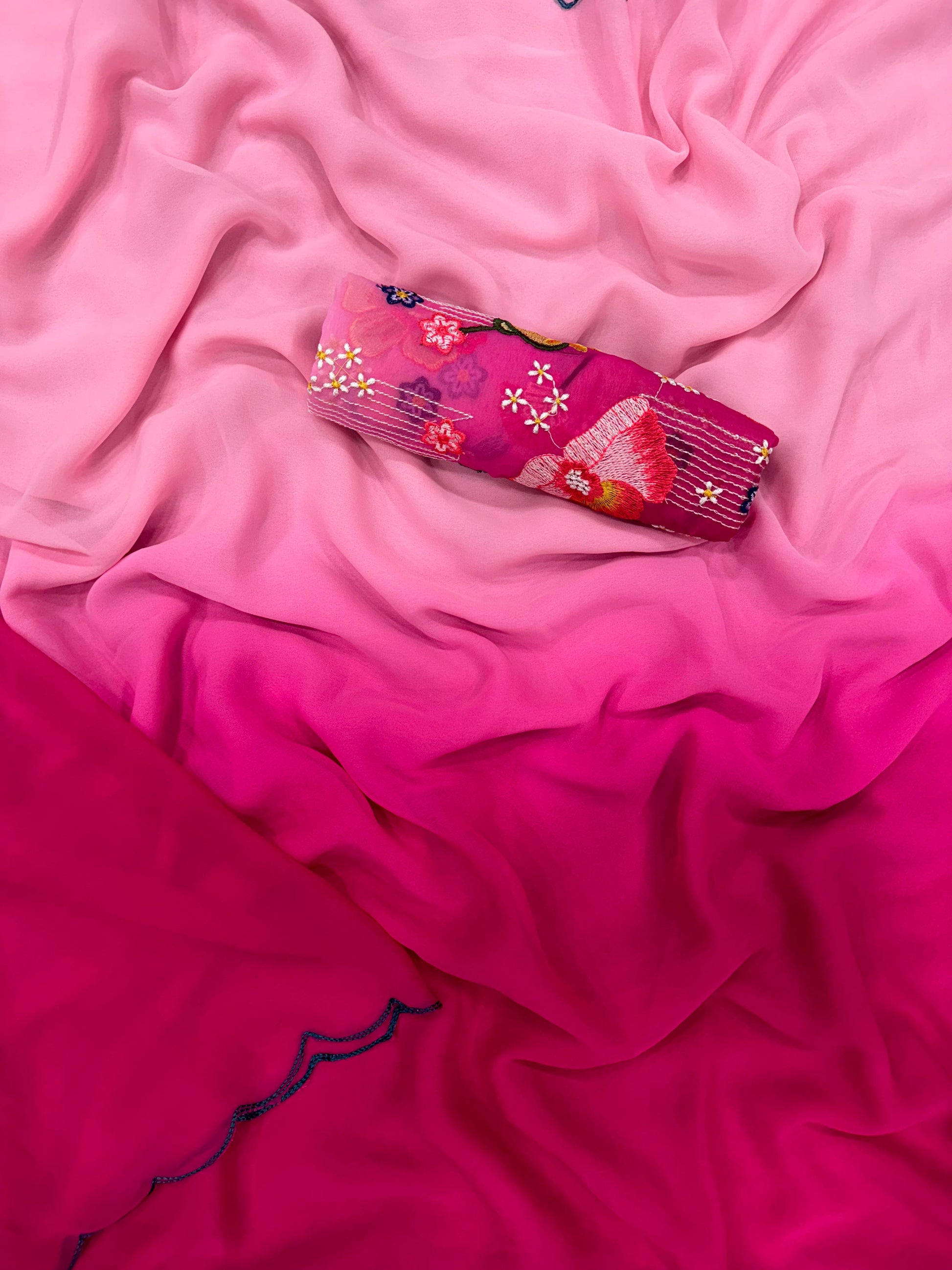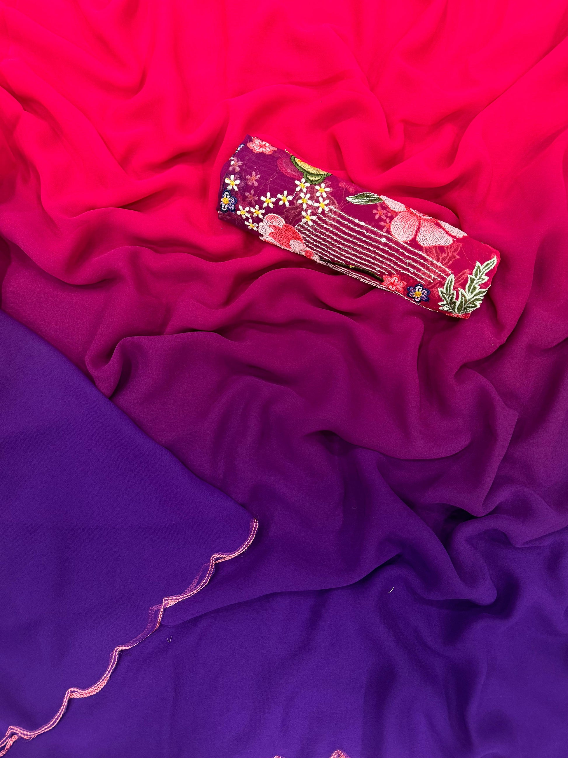 Saree Fabric & work - Shaded Faux Georgette with fancy arco border