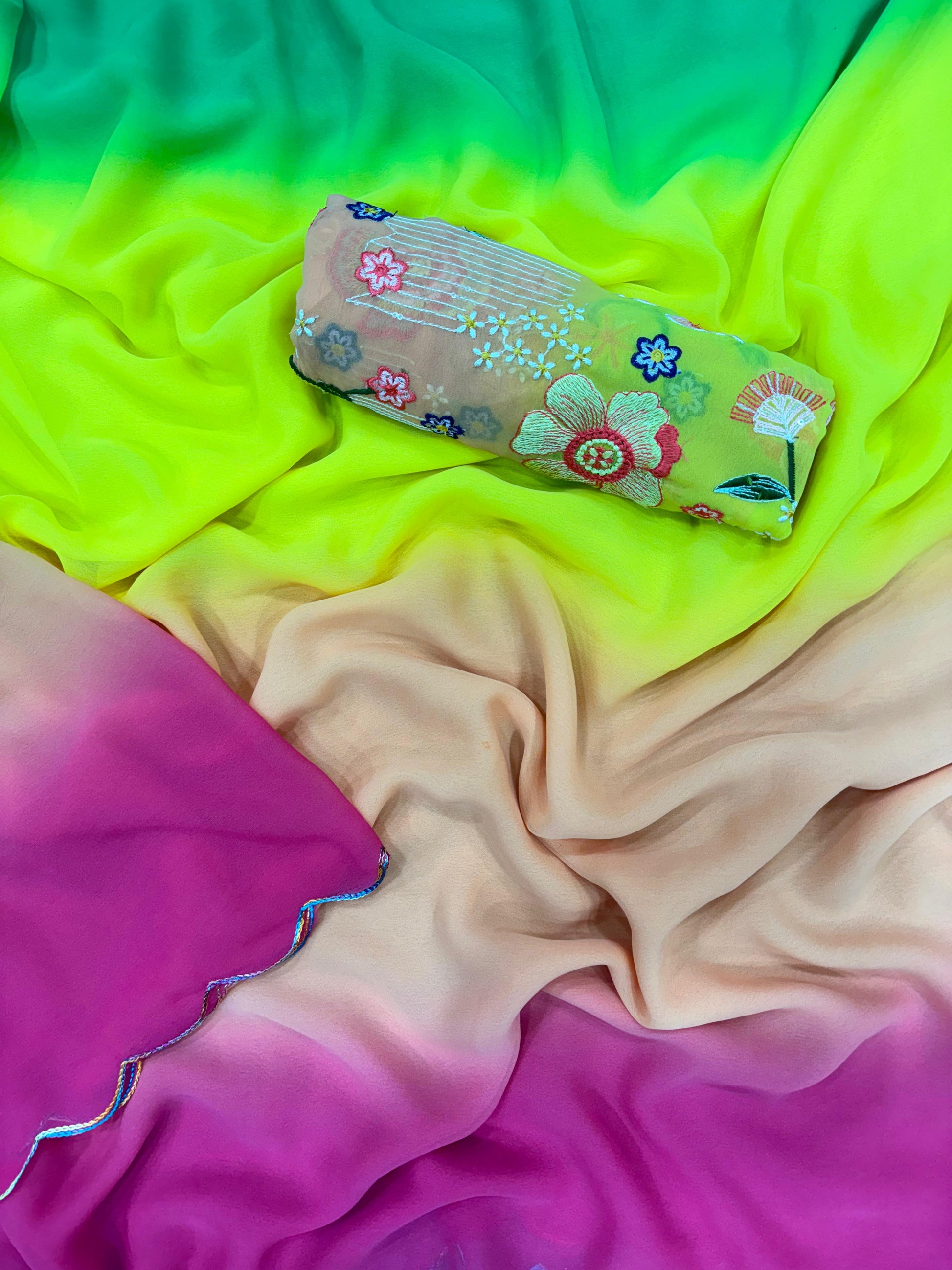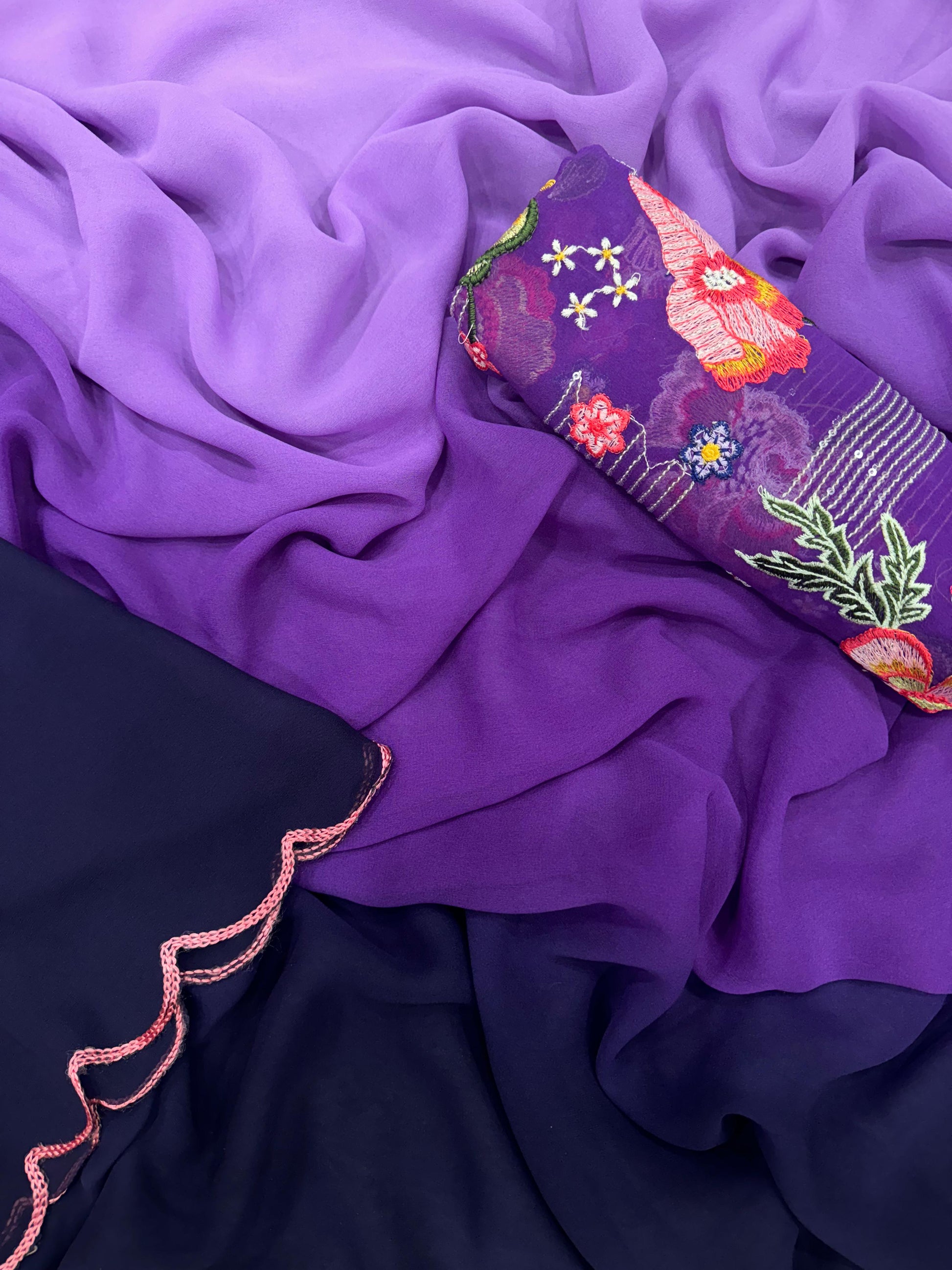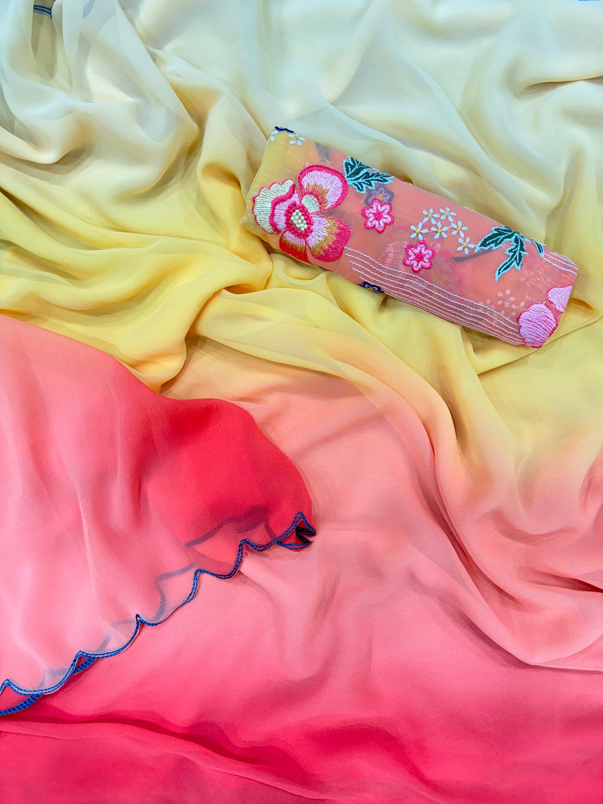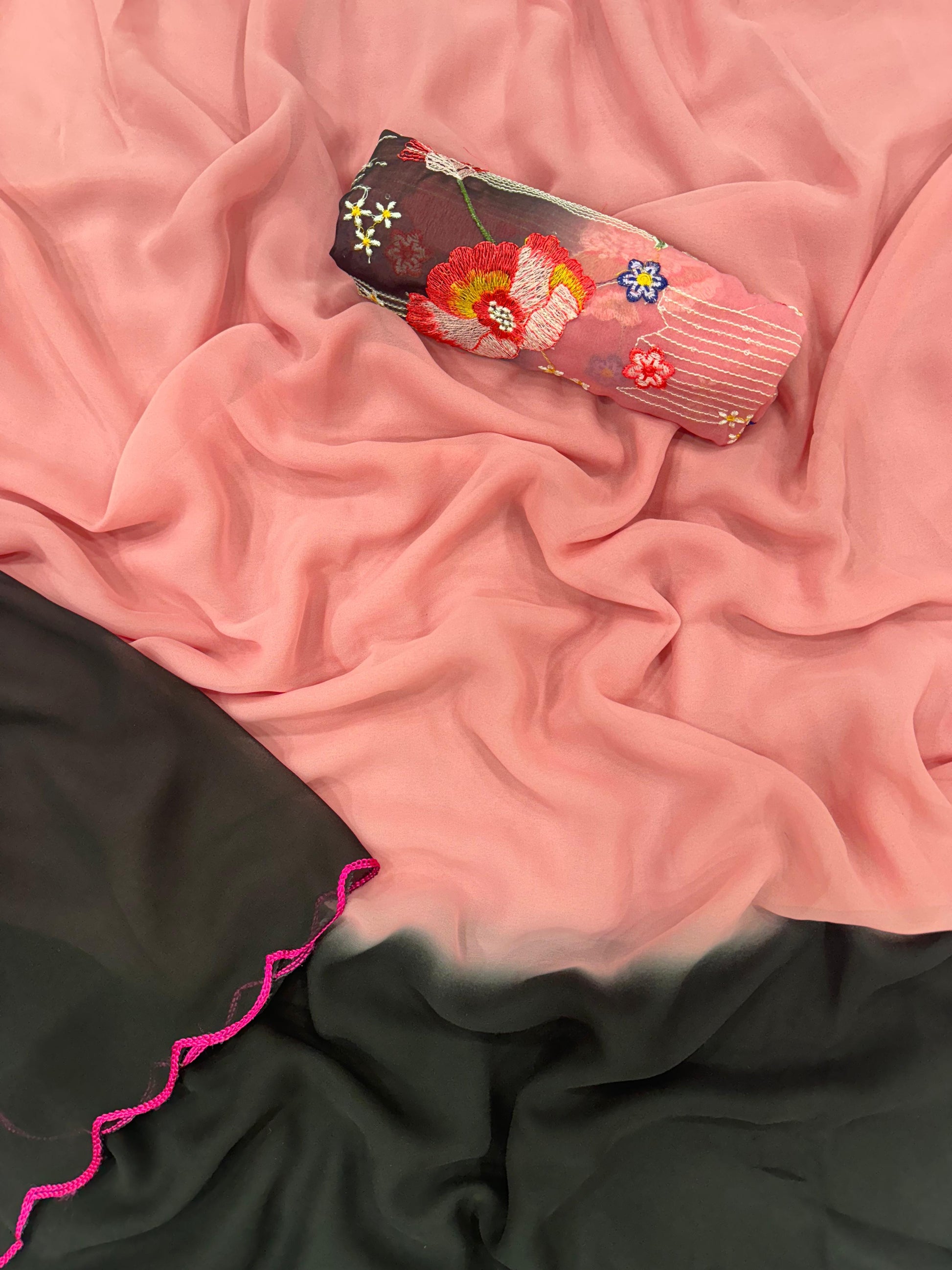 Saree Fabric & work - Shaded Faux Georgette with fancy arco border
