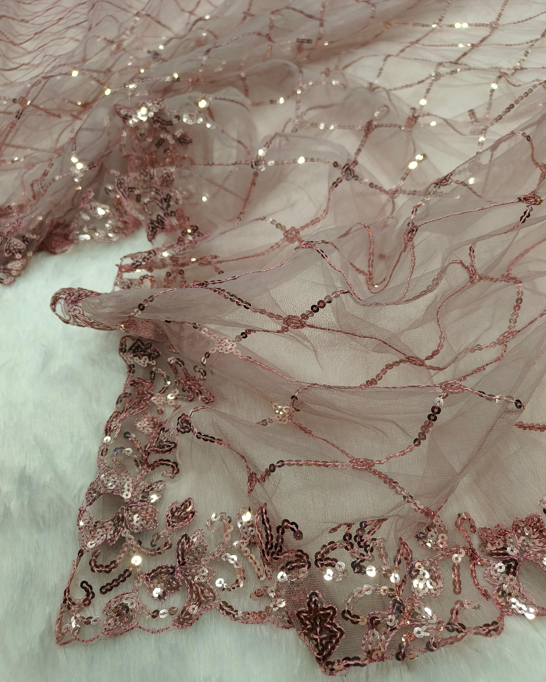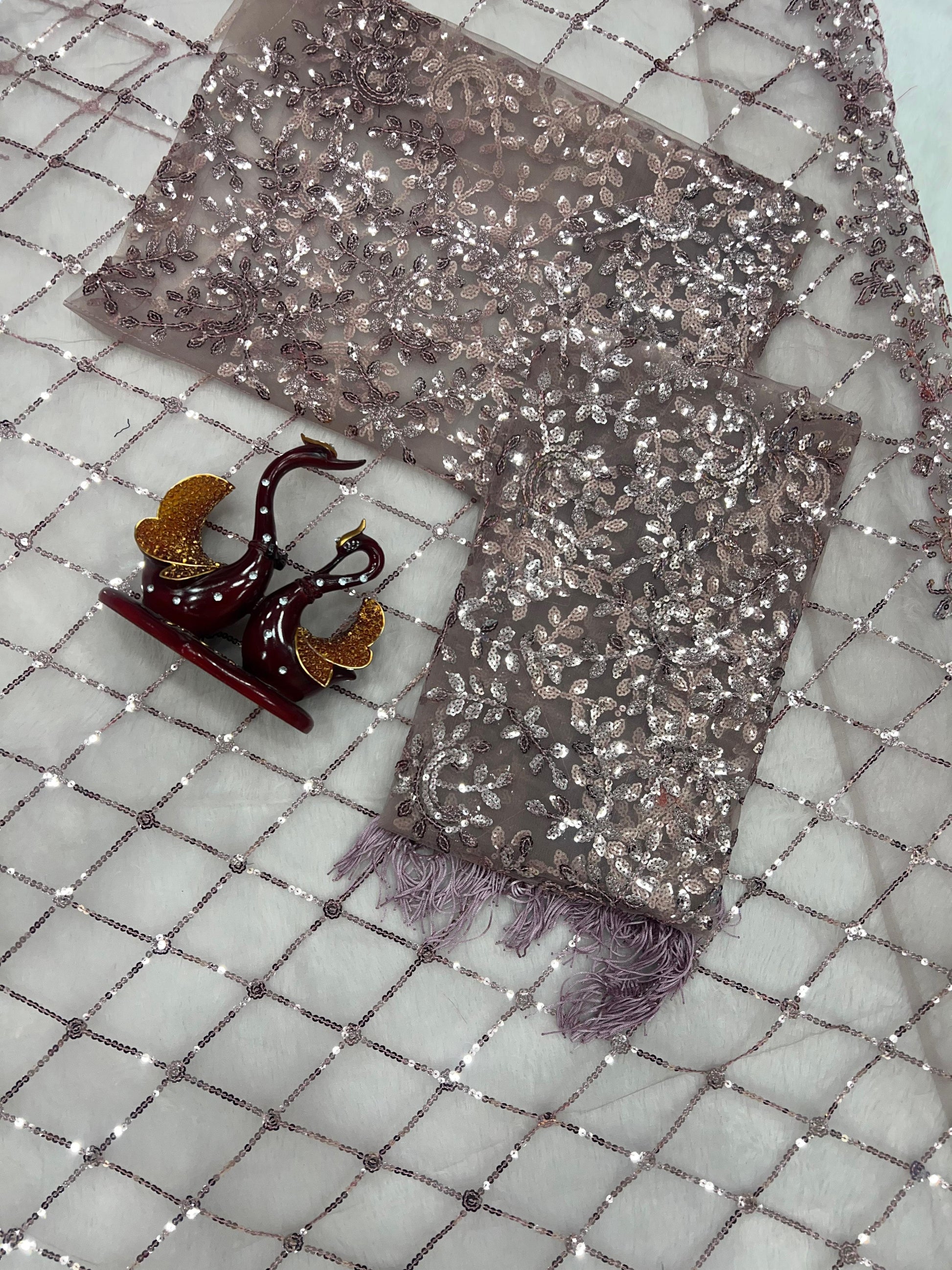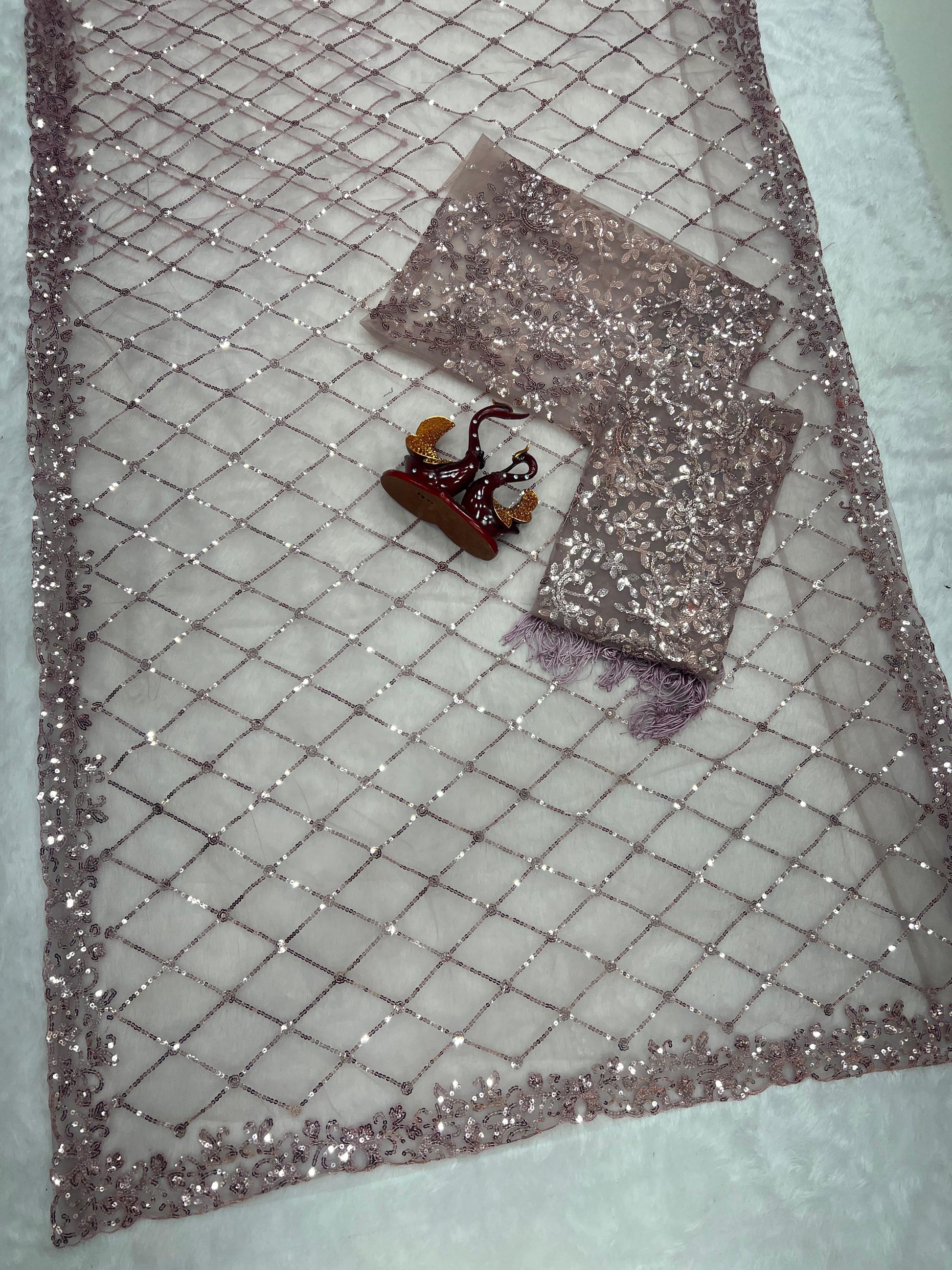 This Onion net saree is embellished with Sequins all over saree as well as Blouse.