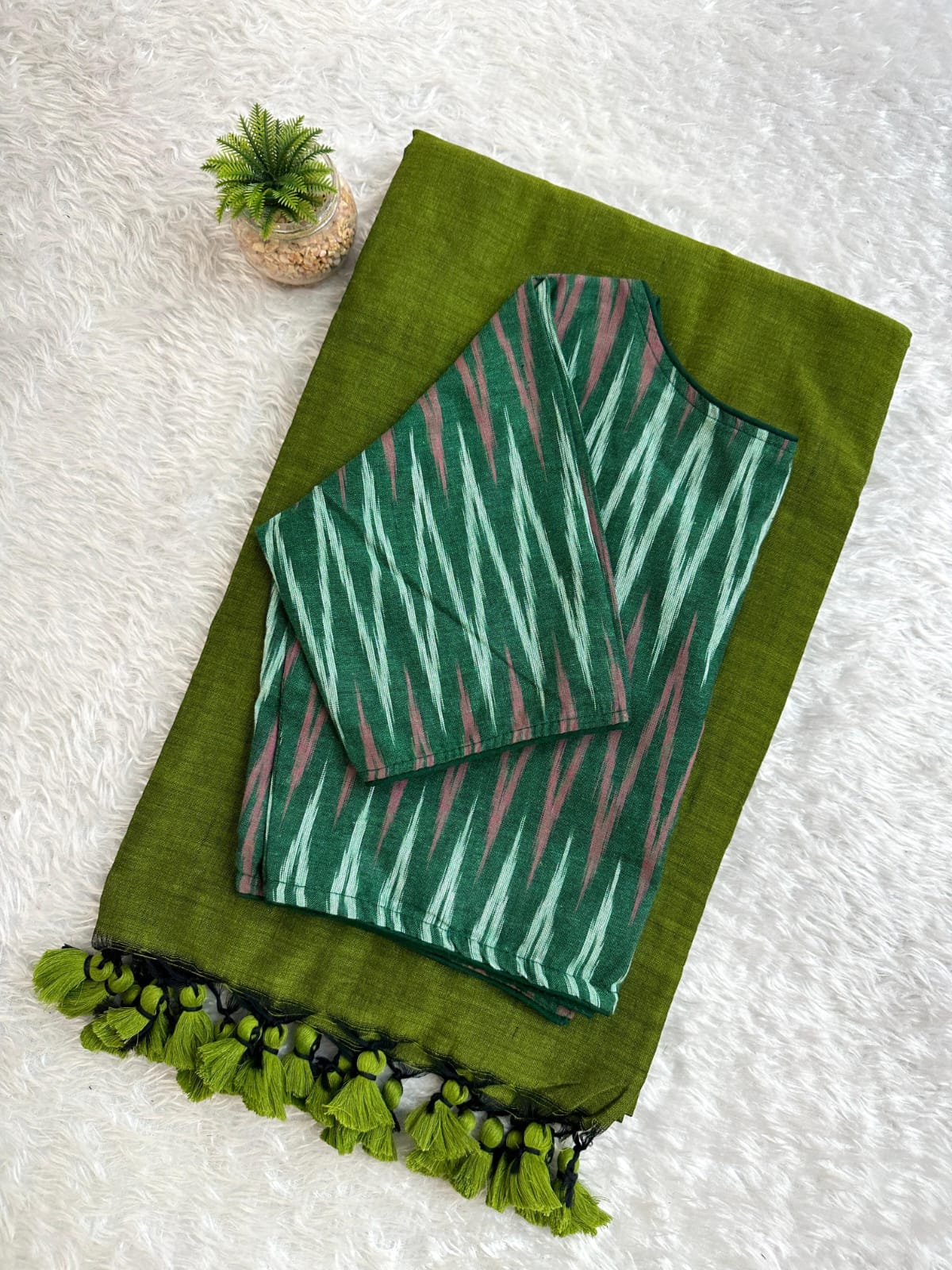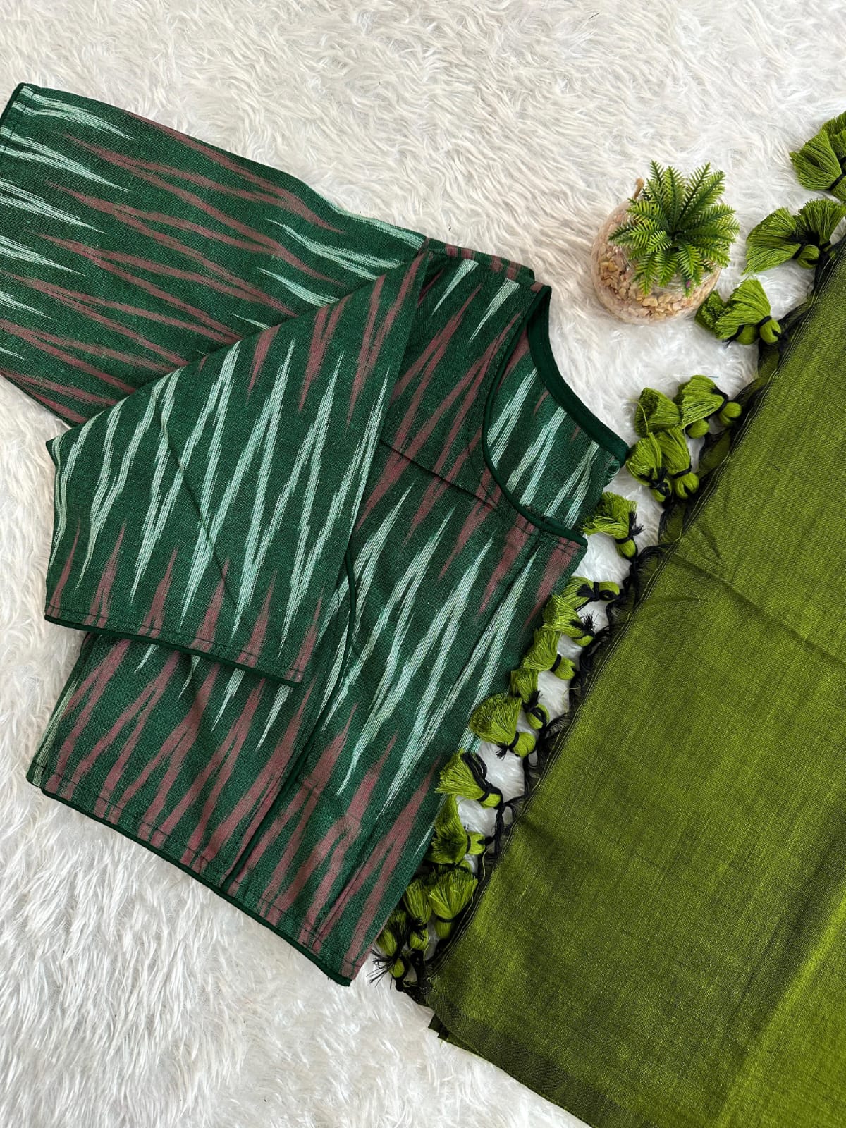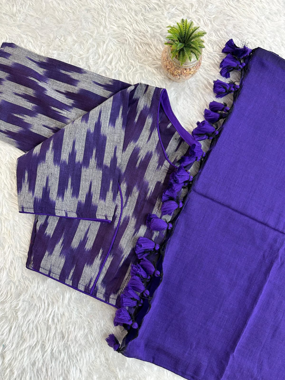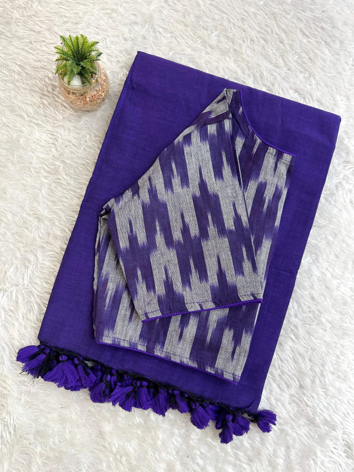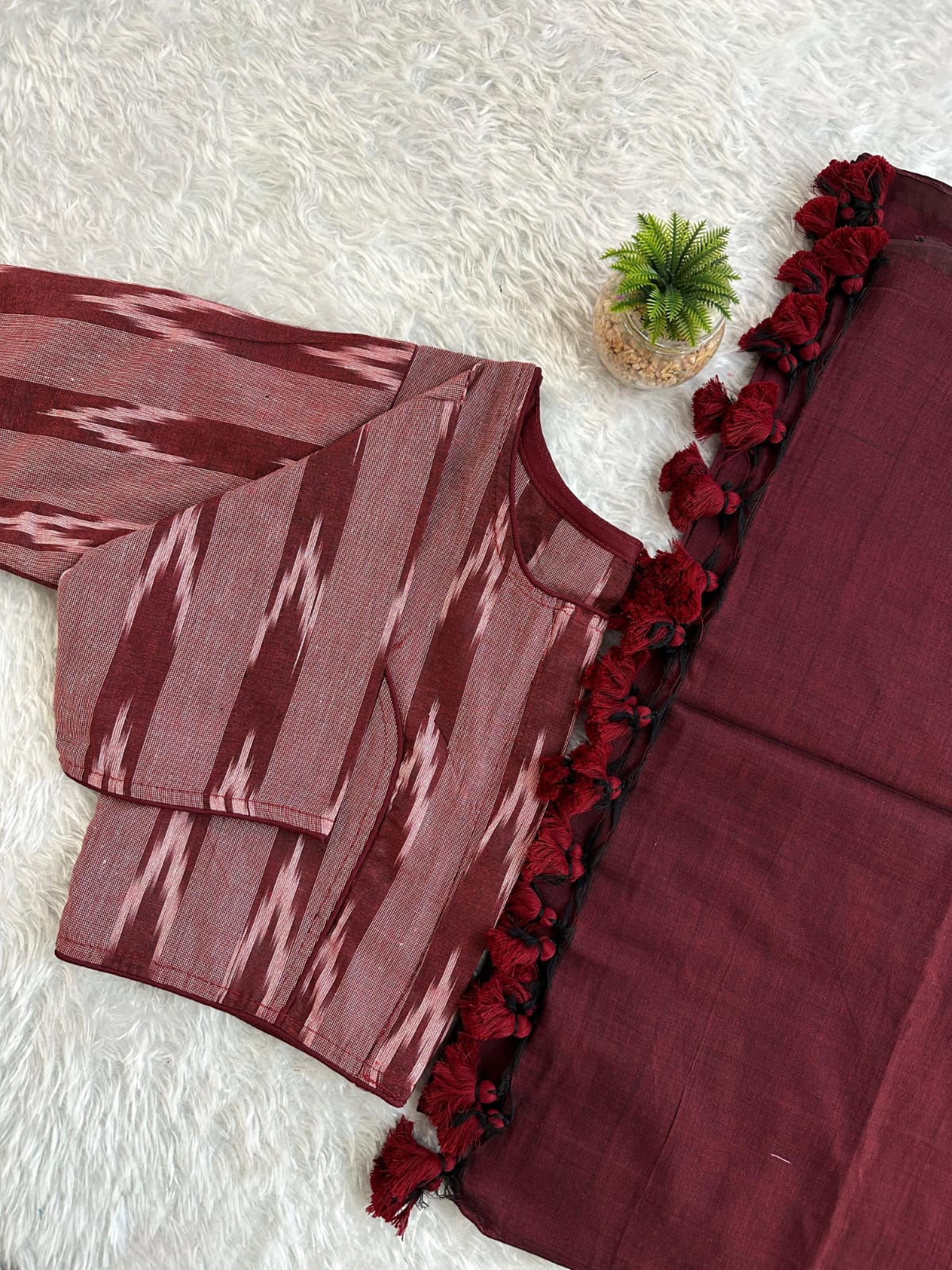 Pure Cotton Handloom Saree with Ikkat Blouse