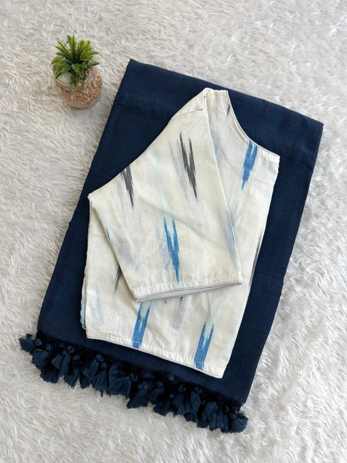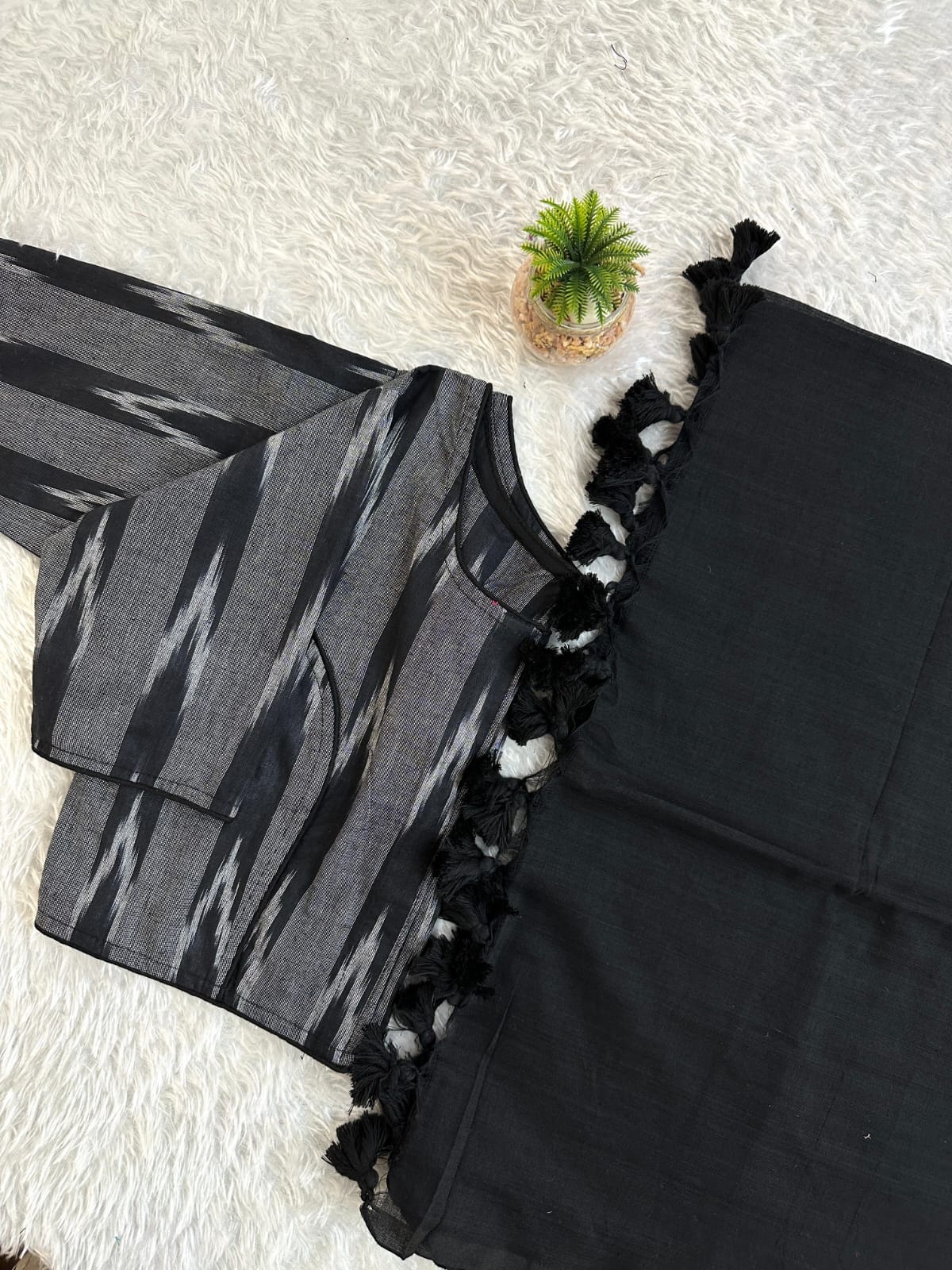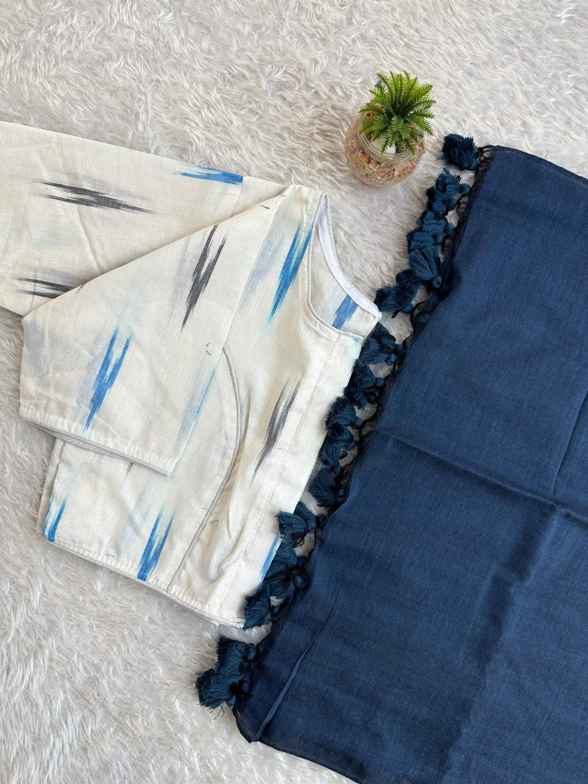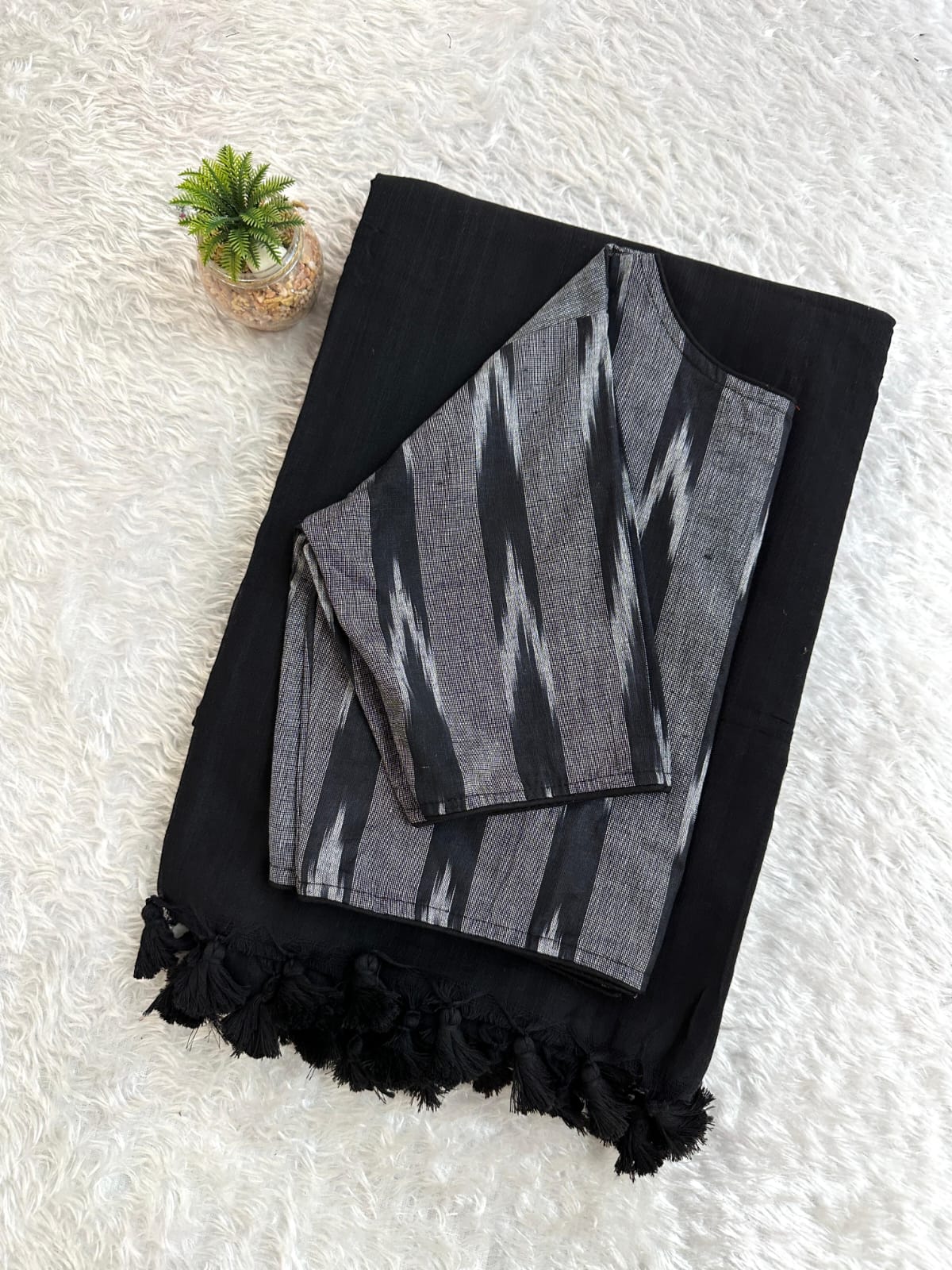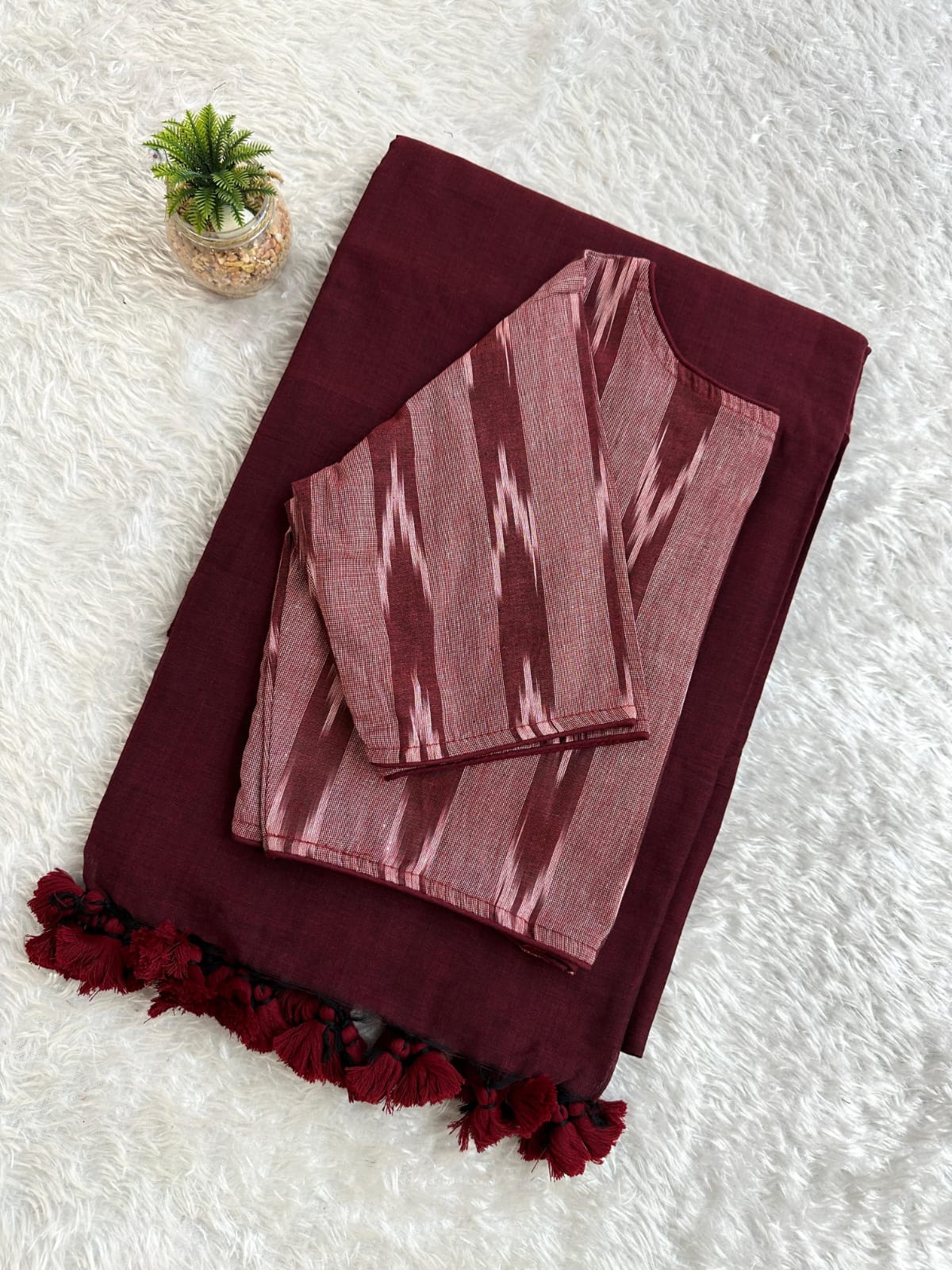 Pure Cotton Handloom Saree with Ikkat Blouse