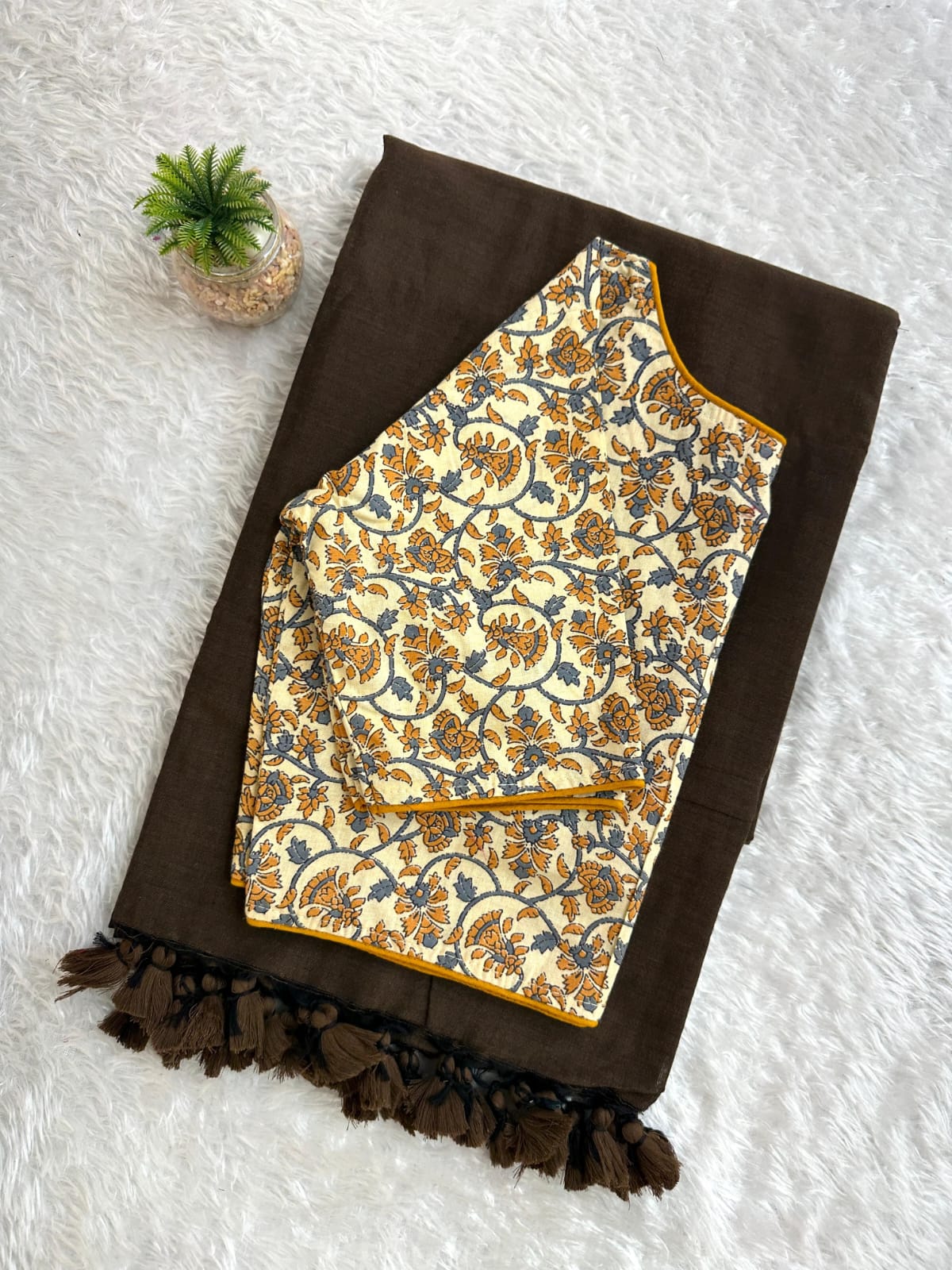 Saree work : Plain with tassels at Pallu border