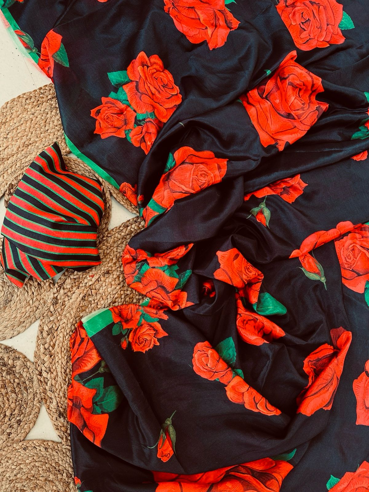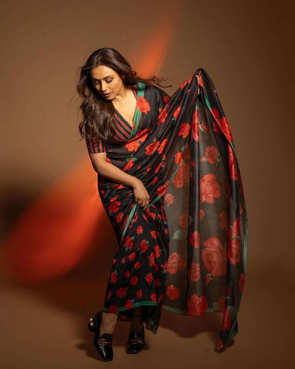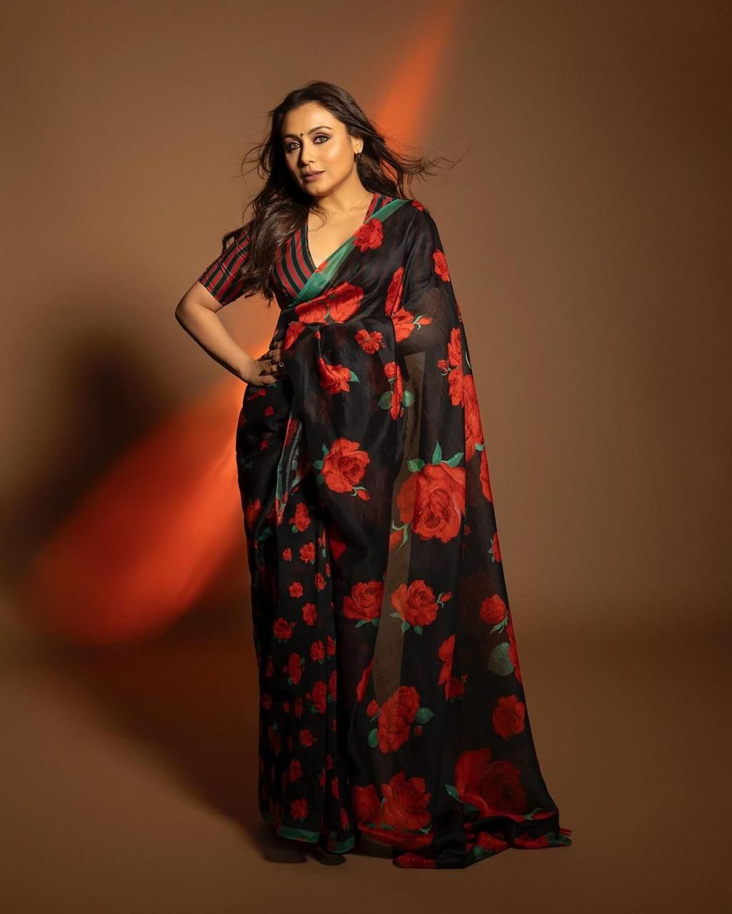 Rani Mukherjee inspired red-black floral saree