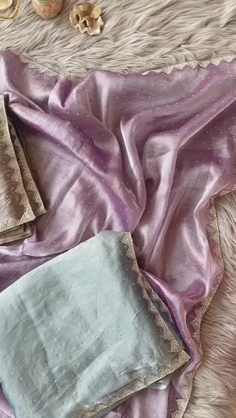 Burbury Silk Saree with diamond work