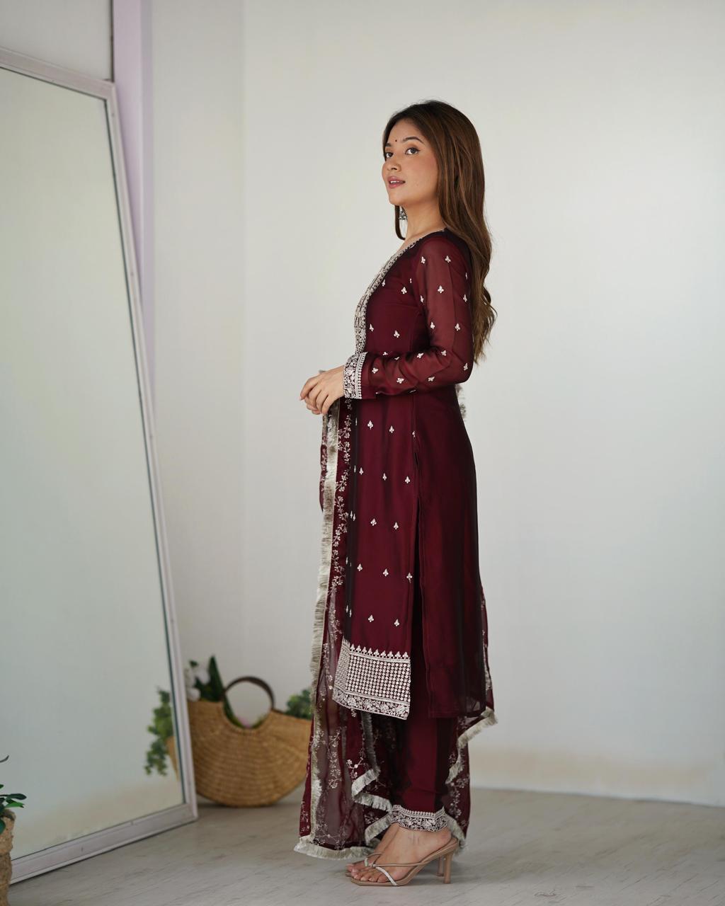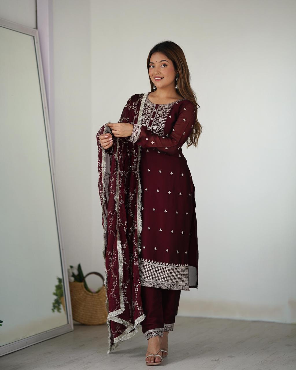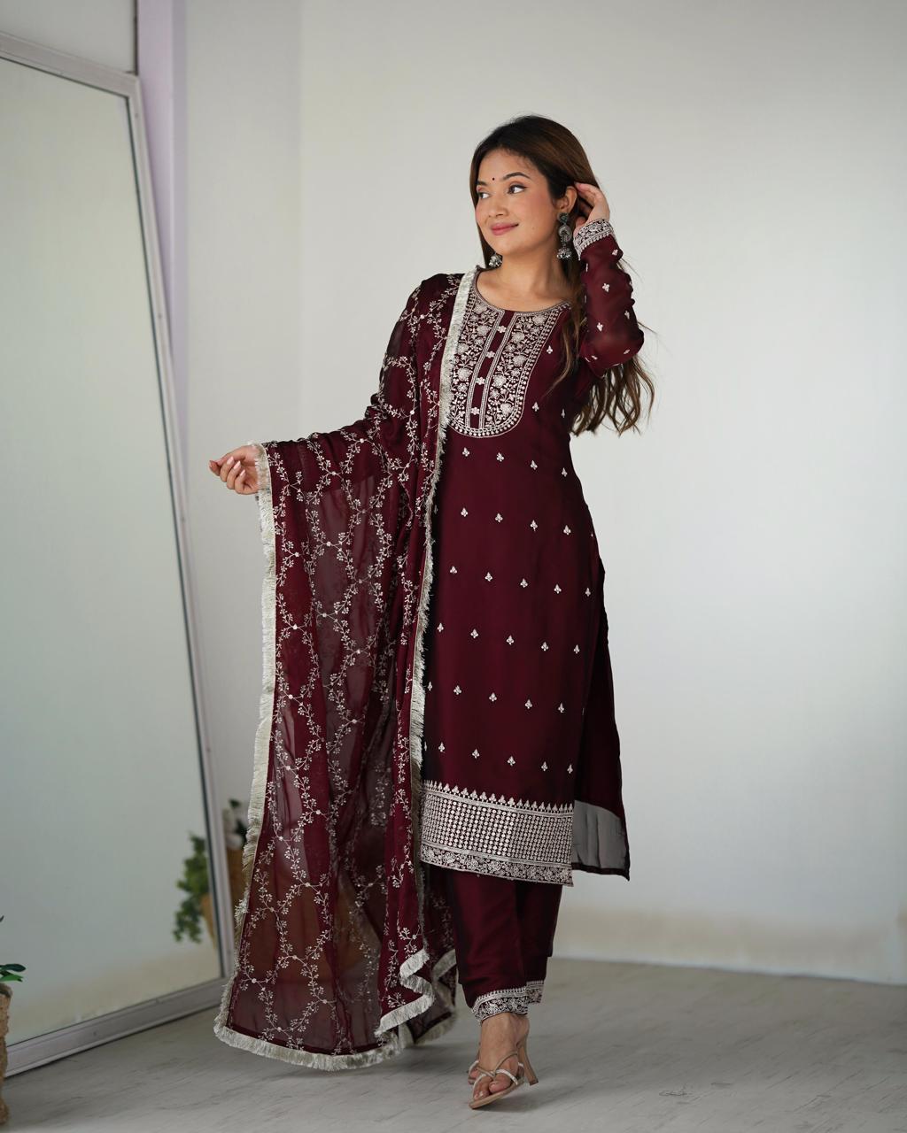 Maroon Rangoli Silk Embroidery Work Suit