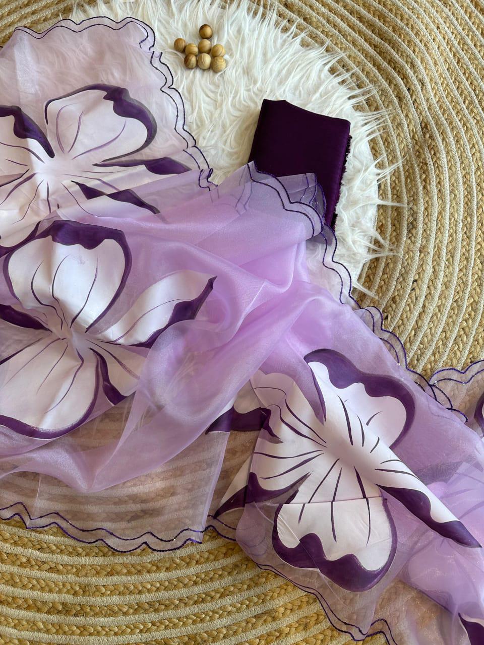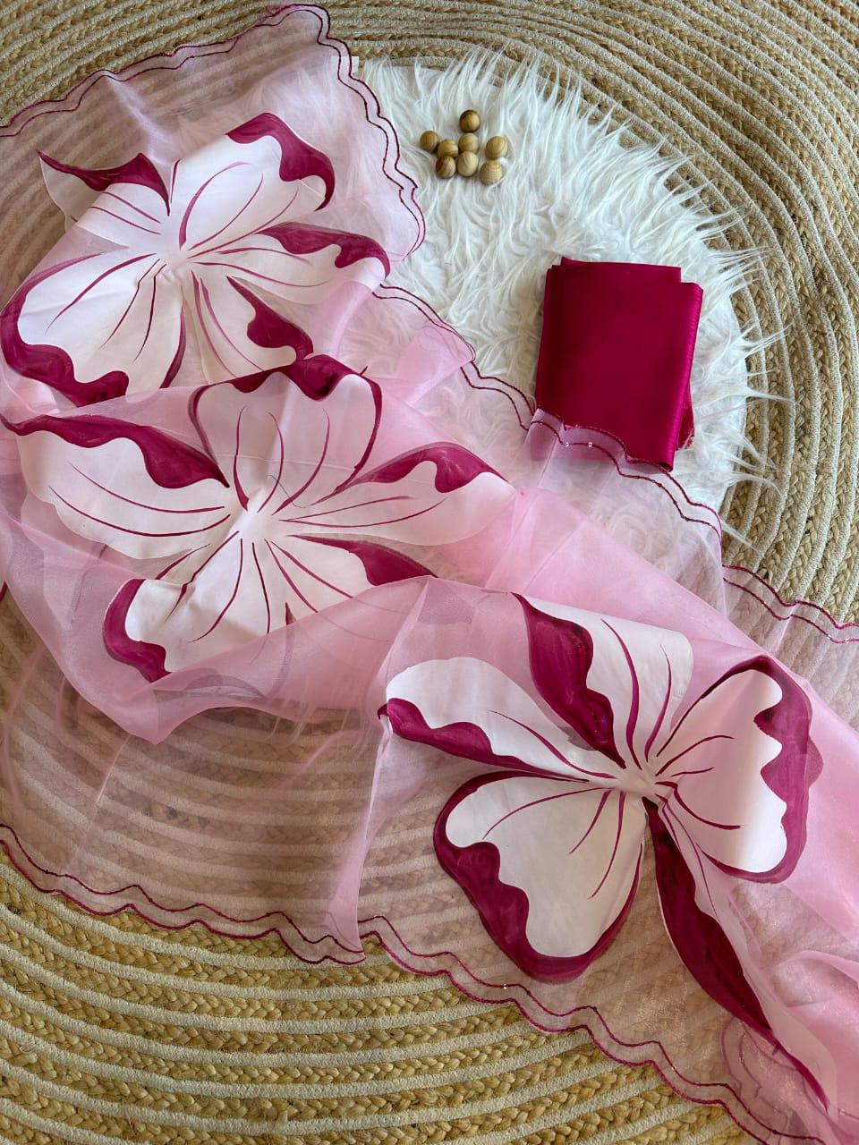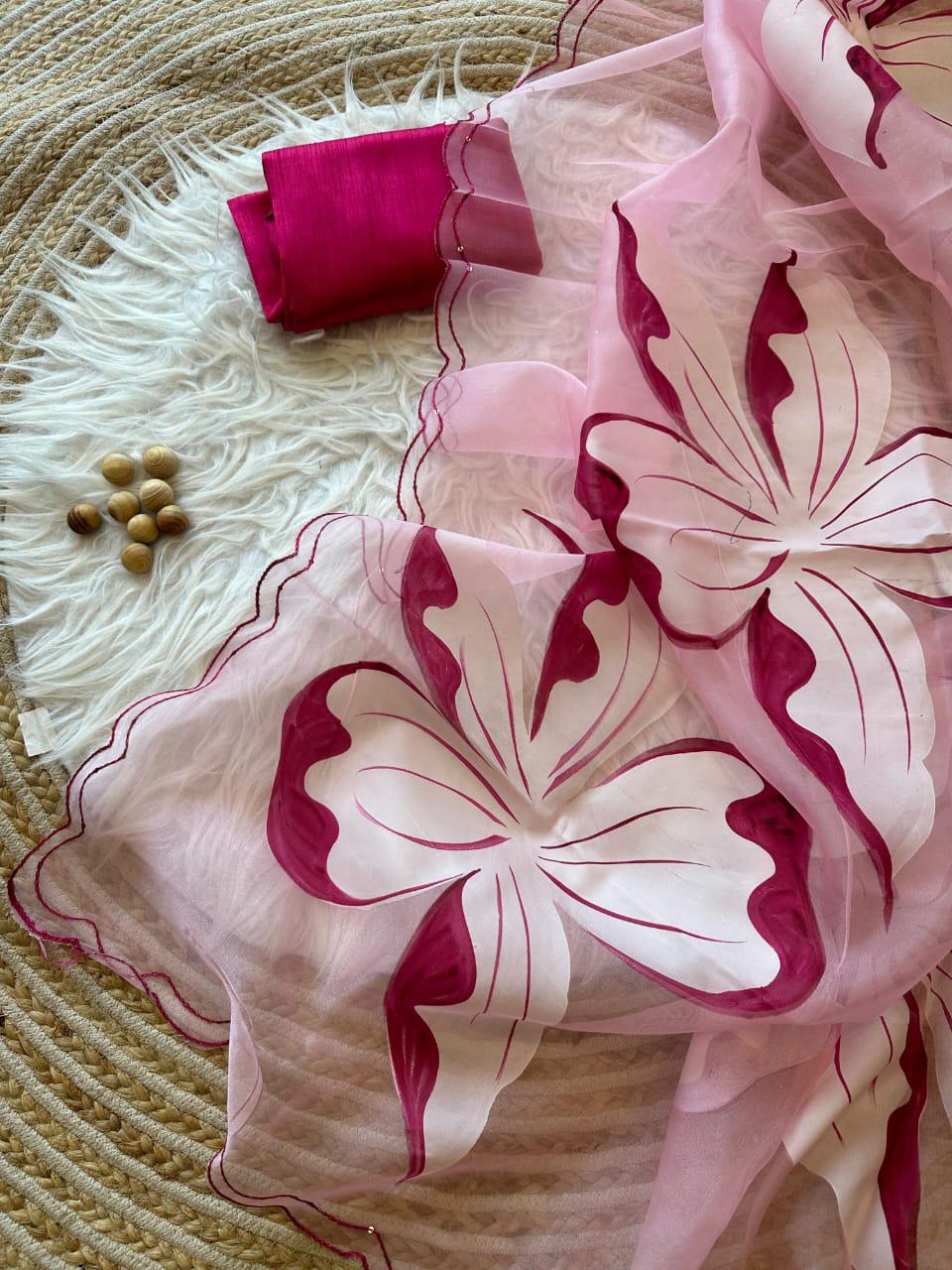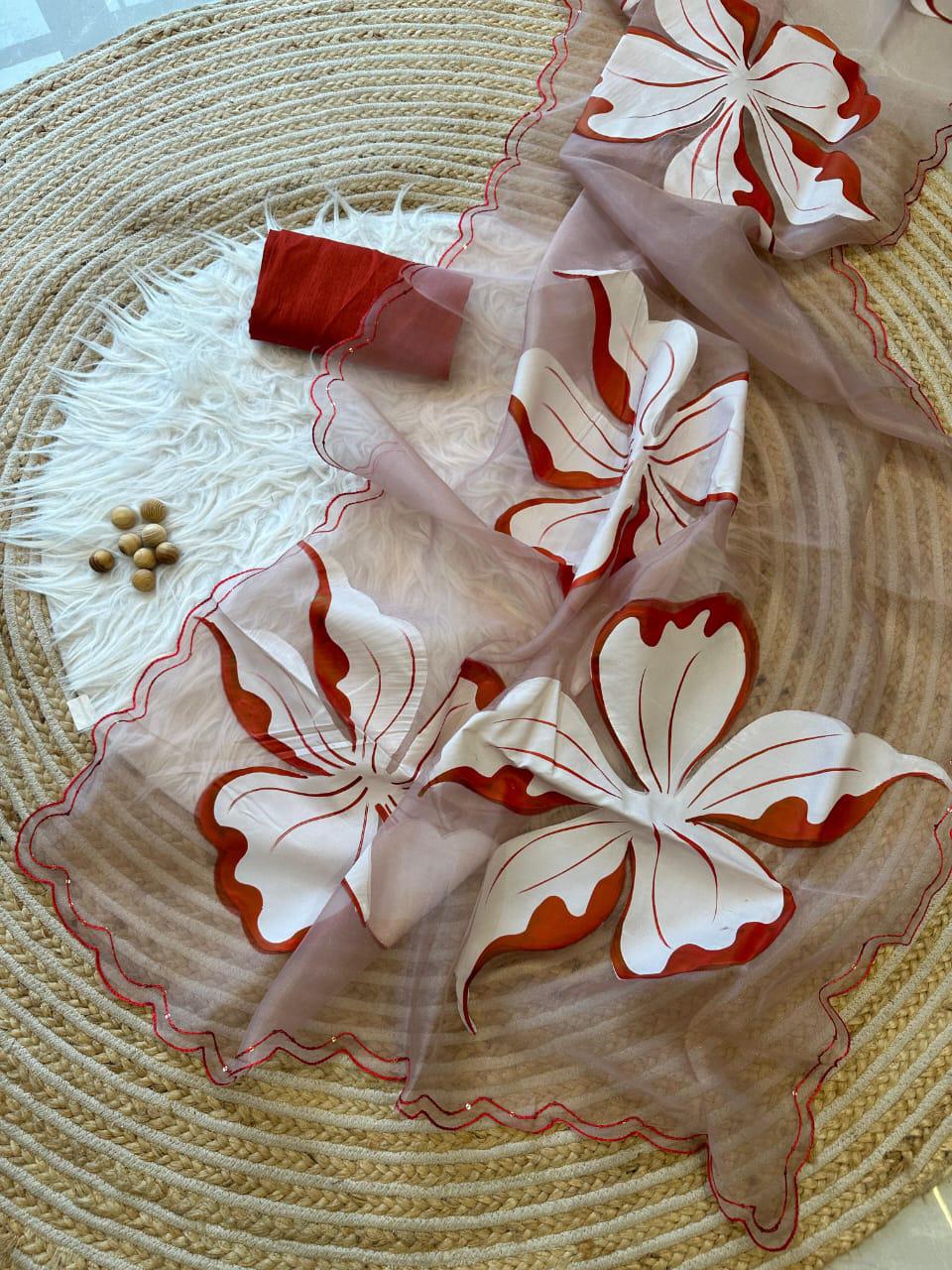 Fabric :- pure Organza silk Saree with beautiful handpainted flowers and sequins work on border
