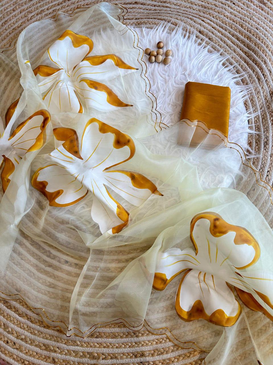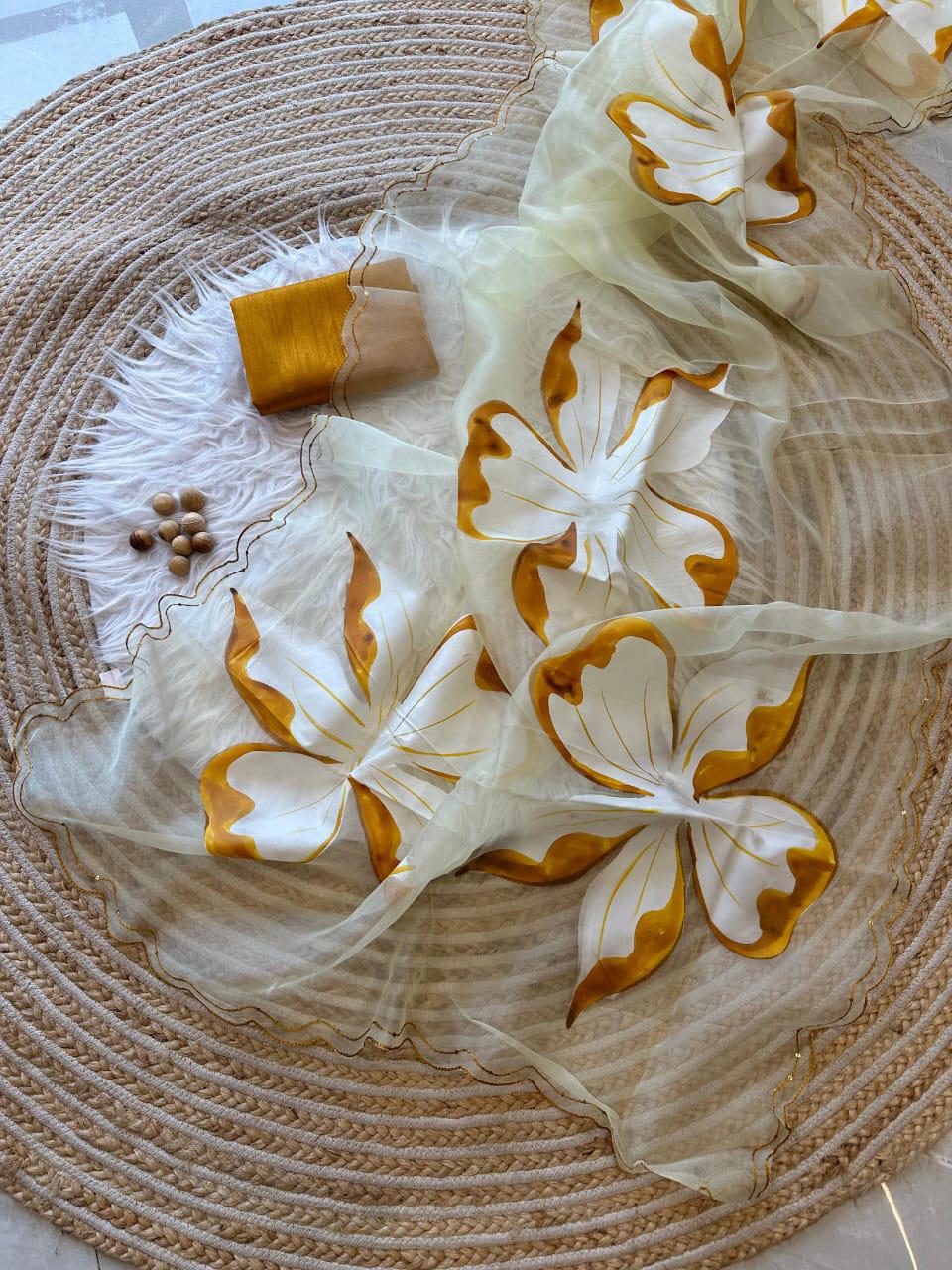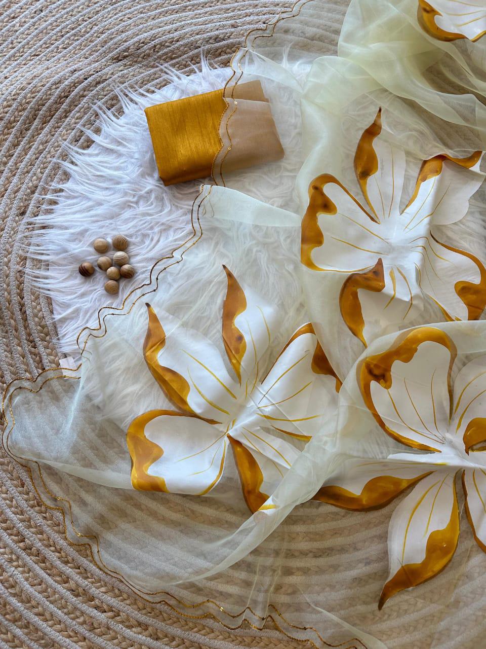 Pure Organza Silk Hand-Painted Saree