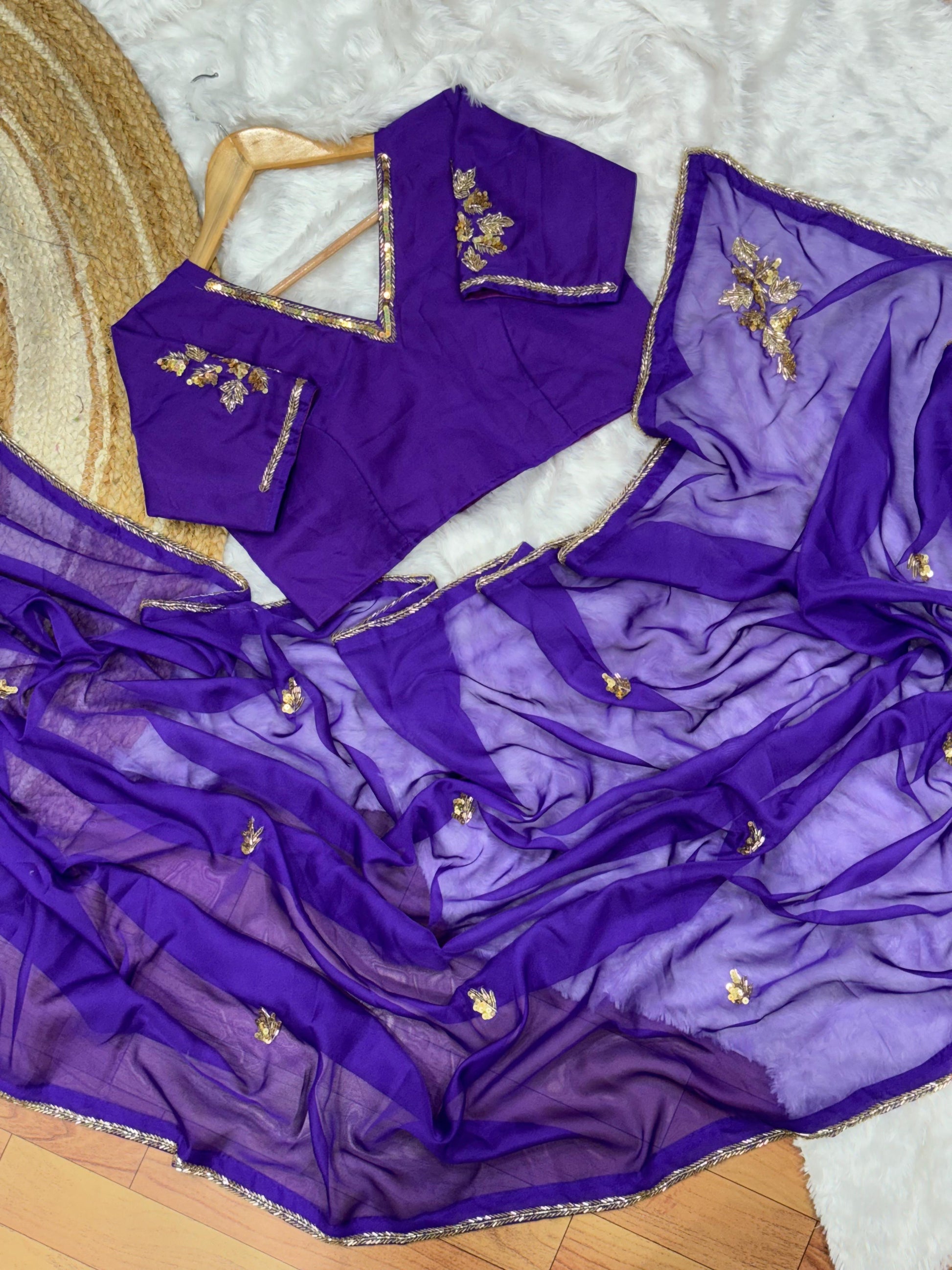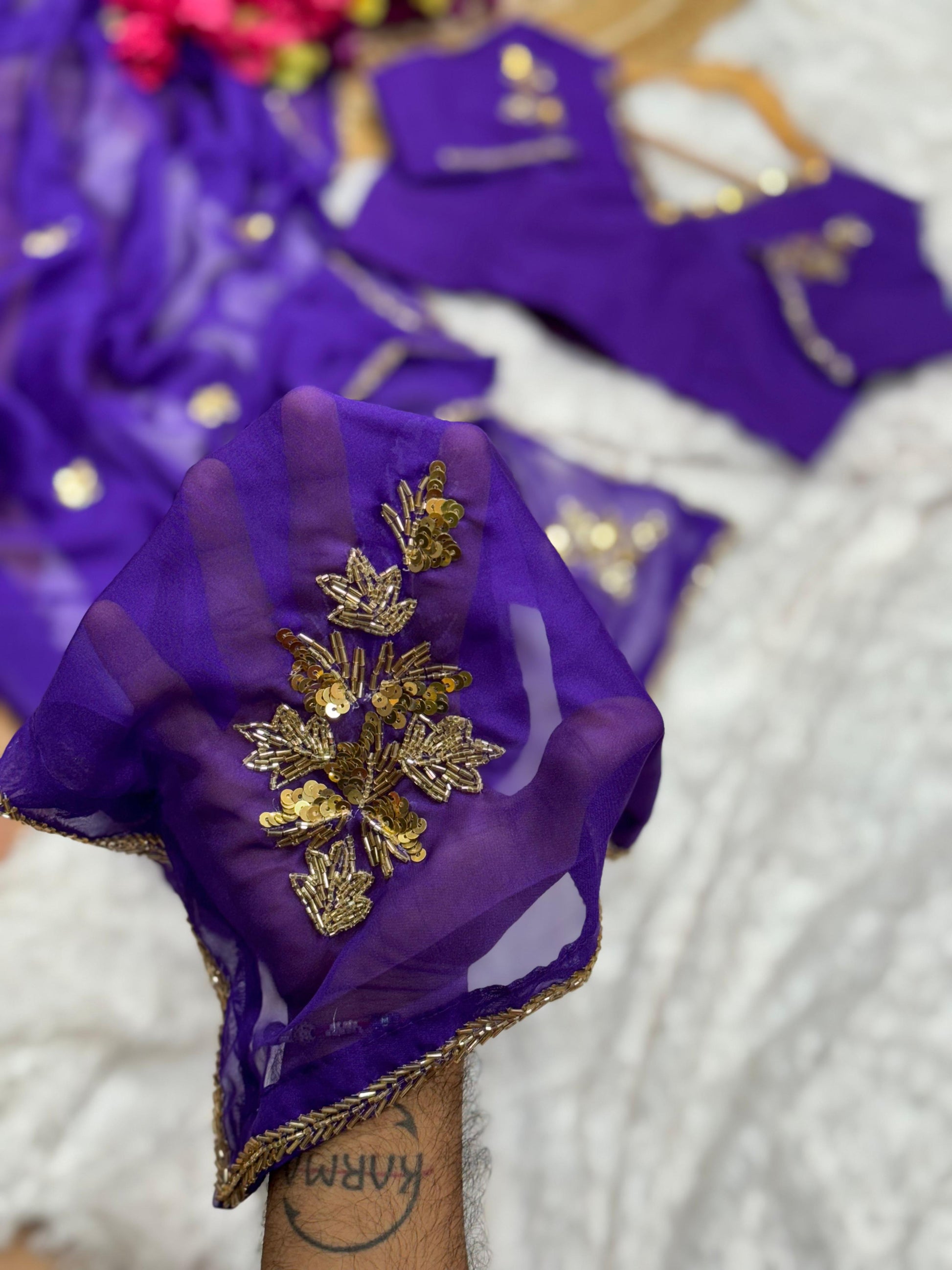 Blouse: Soft Organza Blouse Fabric With Front Side Work + 2 Butta On Sleeves. Beautiful Handwork Done Of Cutdana And Sequence (blouse unstitched)
