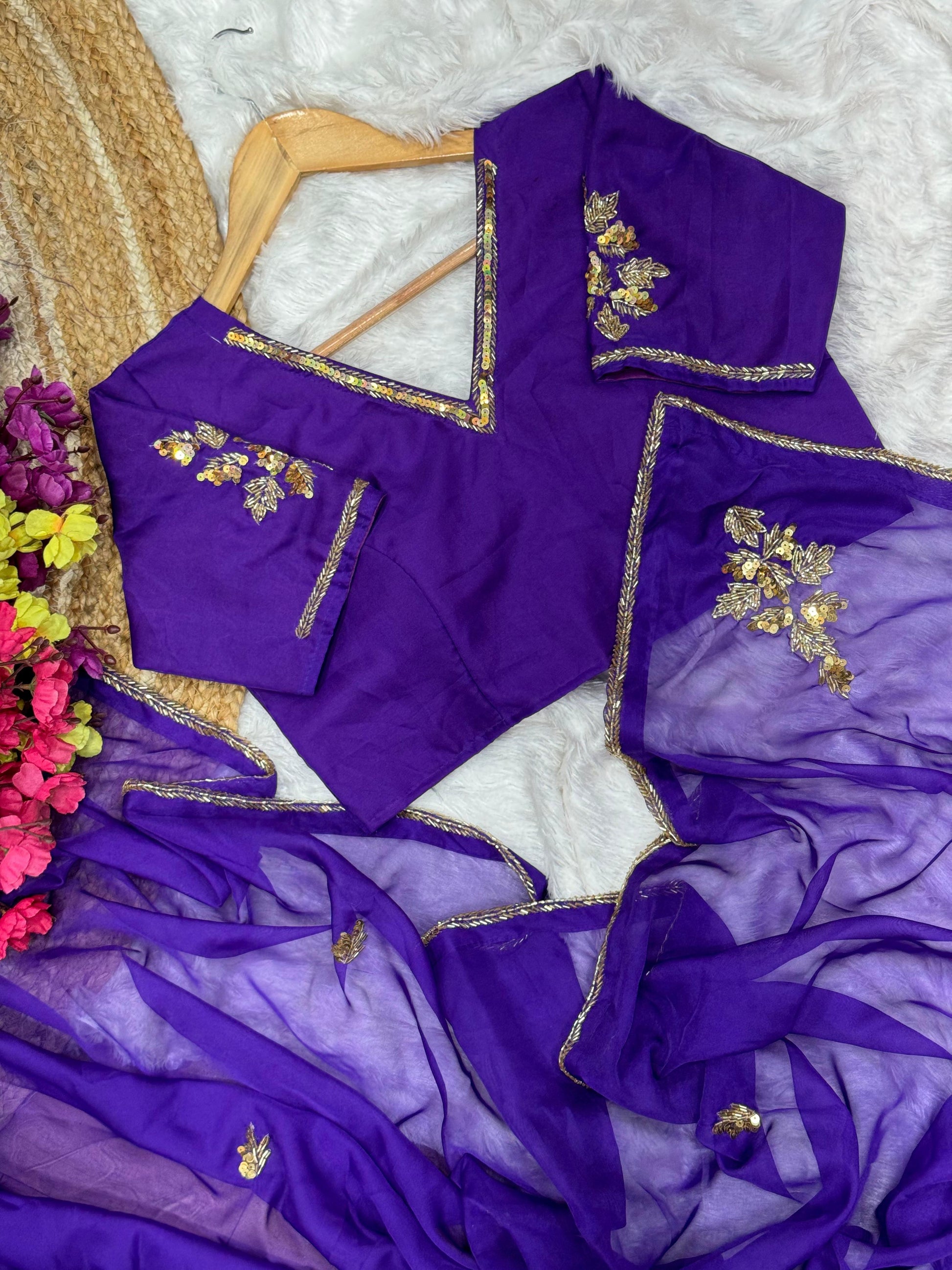 Saree: Soft Organza Fabric with beautiful handwork done On Border And Having Buttas In Saree Of Cutdana And Sequence