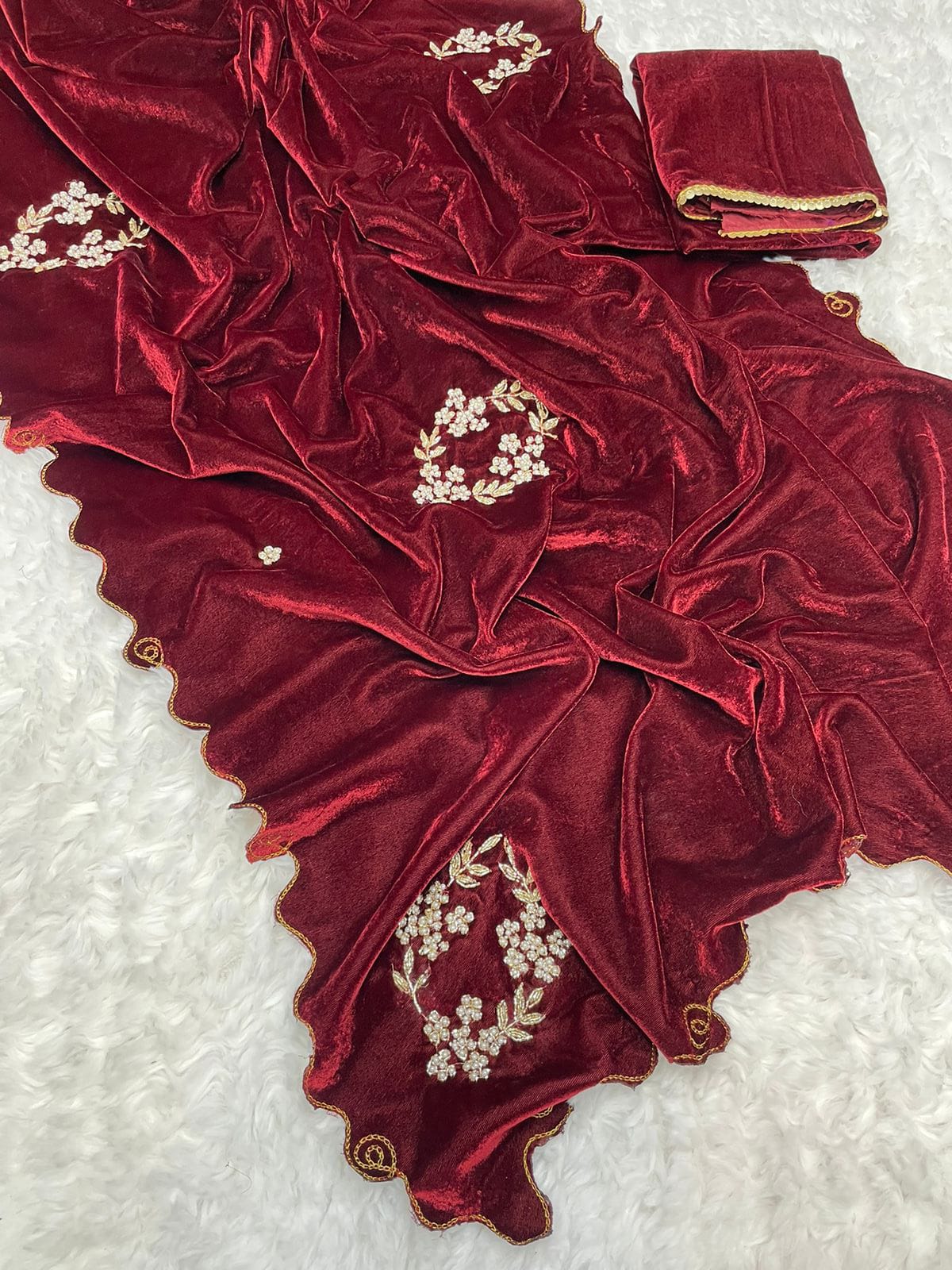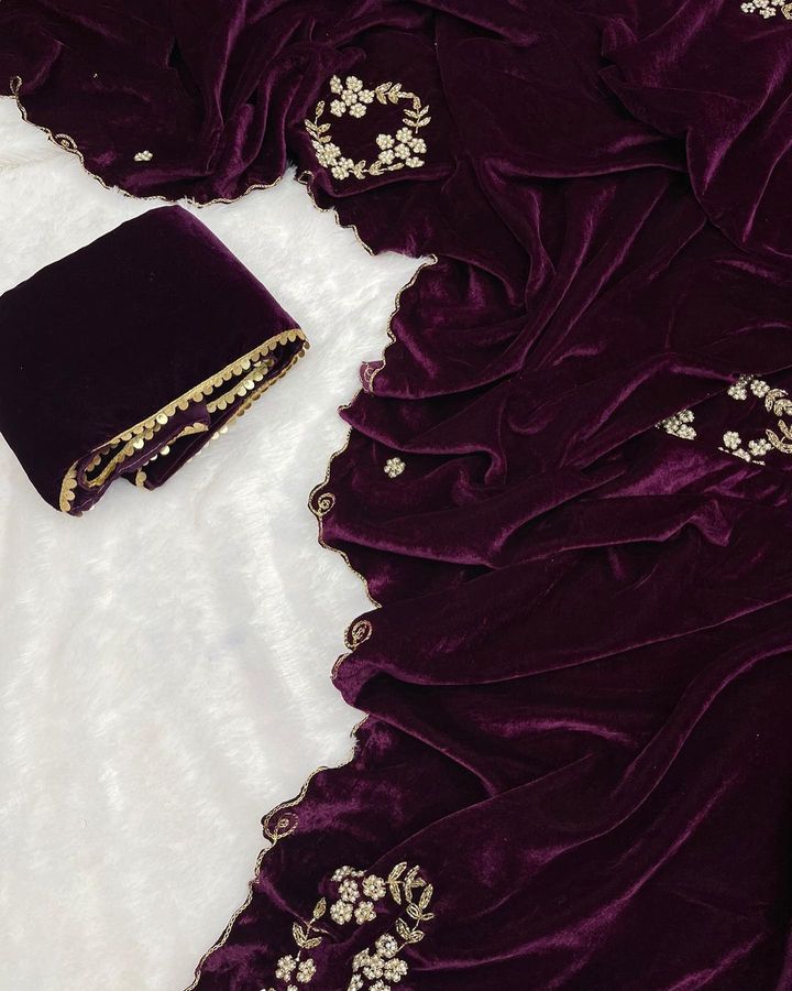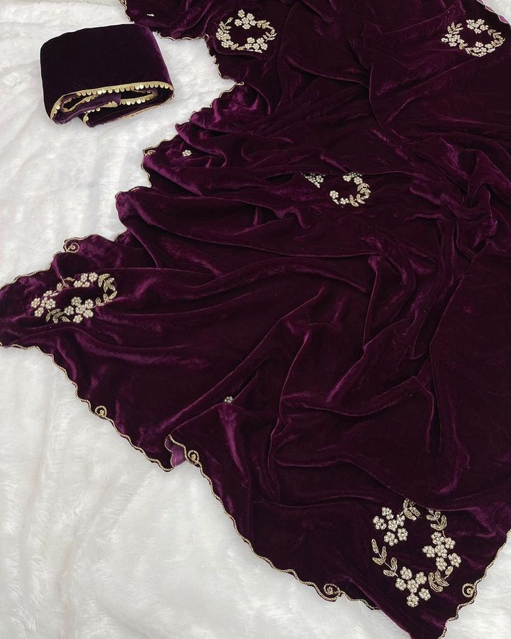 Velvet Saree with handwork